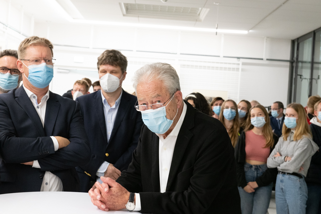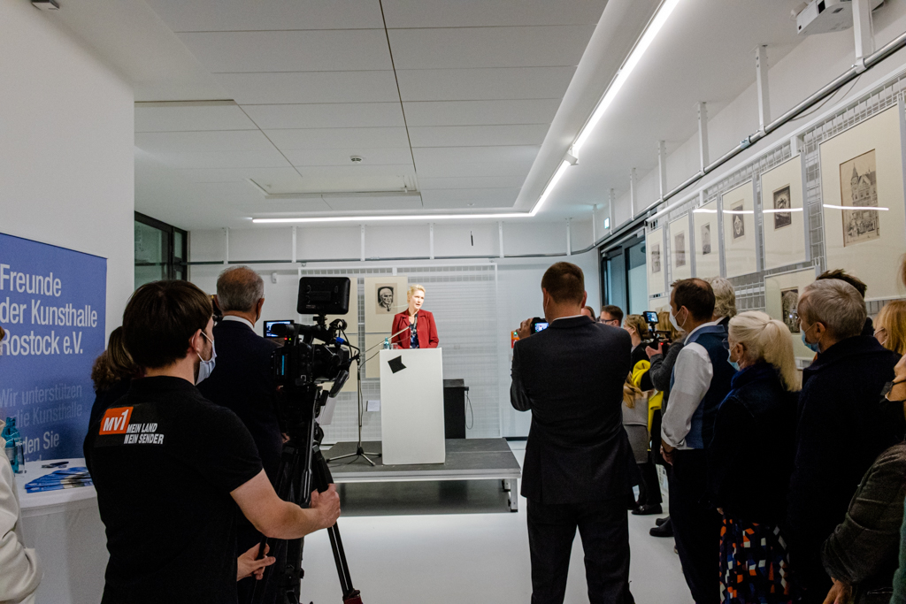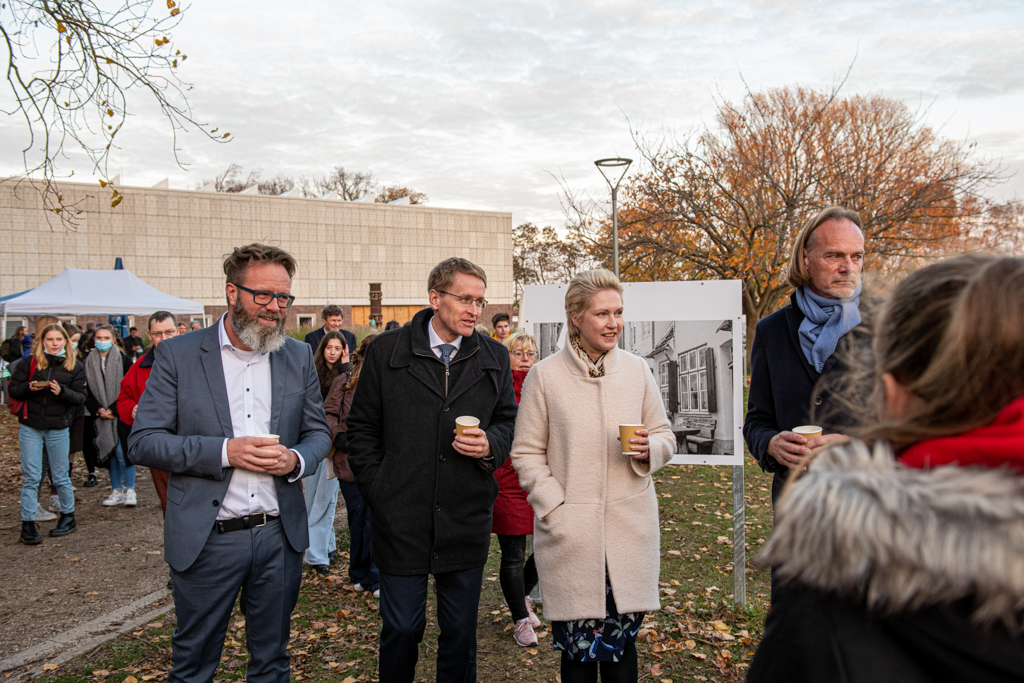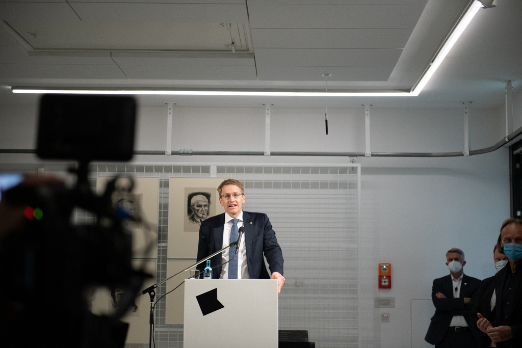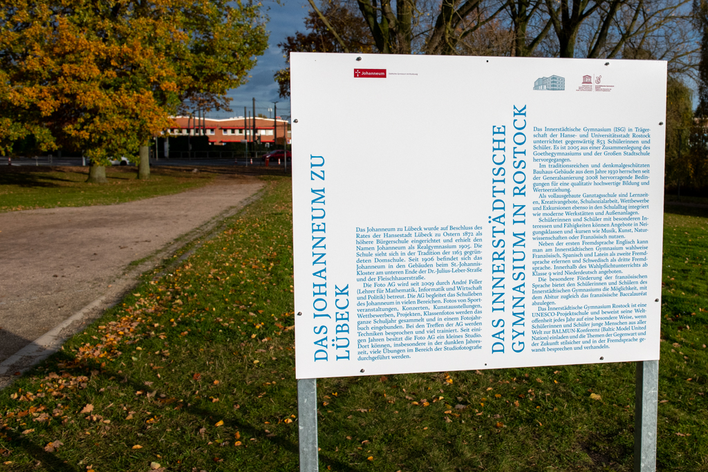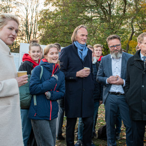 Menschen, die mehr oder weniger freiwillig das Johanneum verließen, damals, als der demokratische Gedanke, den wir heute an unserer Schule haben, noch nicht von jeder Lehrkraft mitgetragen wurde, wie uns Björn Engholm, der auch extra aus Lübeck angereist war, im persönlichen Gespräch eindrucksvoll erzählte. Menschen, die im Alter von 15 Jahren den Mauerfall nur fast nebenbei wahrnahmen und erst heute dessen Tragweite sukzessive realisieren. Dies erfuhren wir in der Rede von Manuela Schwesig. Und Menschen, die auch wirklich mal unsere Perspektive einnehmen wollen, vielleicht, weil wir sie mit unseren Projektbeiträgen an ihre eigene Schulzeit erinnern. Vielen Dank, Herr Ministerpräsident Günther, für das freundliche Gespräch während der Ausstellungseröffnung unserer Bilder!