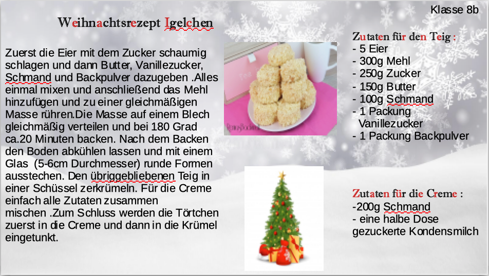 Zum Nikolaus präsentiert Daria aus der 8b ein russisches Rezept: die Weihnachtsigelchen.