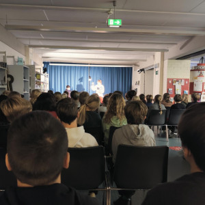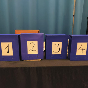 Man fühlt sich, als wäre man in einer anderen Welt: Überall sind Bücher, es ist dunkel und geheimnisvoll. Eine Lampe brennt auf dem Tisch und Herr Rudloff, der Vorleser, begrüßt uns. Aber wo sind wir überhaupt? Inmitten von Büchern direkt in der Jugendabteilung der Stadtbücherei in der Hundestraße. Auf dem Tisch sehen wir vier Bücher, die mit blauen Umschlägen abgedeckt sind. Auf jedem Umschlag steht eine Zahl von eins bis vier. Doch was versteckt sich dahinter? Willkommen zur Schulbuchwoche in der Bücherei!