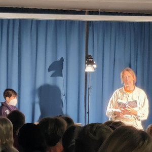Wir alle sind hibbelig und aufgeregt, denn gleich geht es los: Wir dürfen zwei von vier Büchern auswählen, die uns Herr Rudloff vorliest. Aber eigentlich liest Herr Rudloff gar nicht, er schauspielert eher und entführt uns in ein anderes Universum.