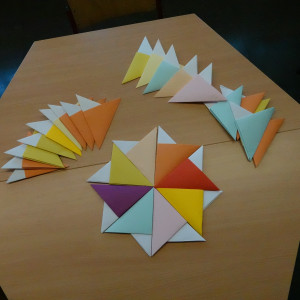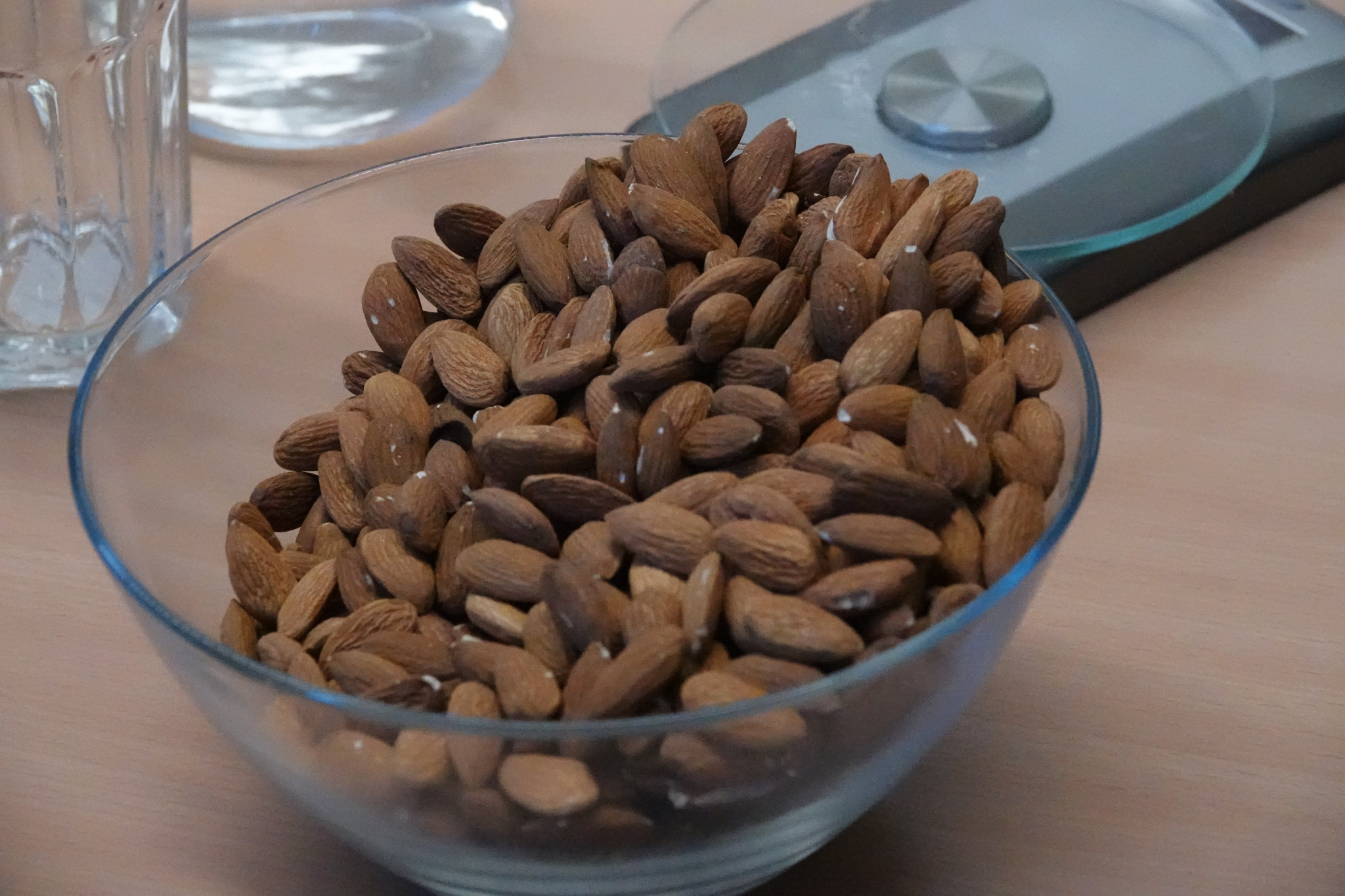 Zuerst haben wir die Klasse in zwei Gruppen geteilt, so dass eine für die Mandeln und die andere für die Tüten zuständig war (in die wir eigentlich später die Mandeln füllen wollten).