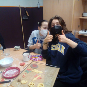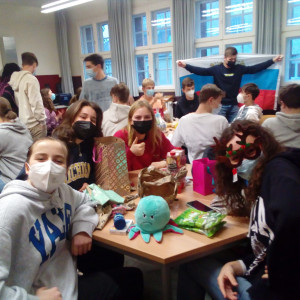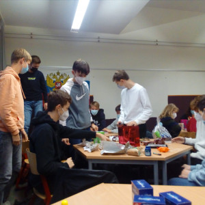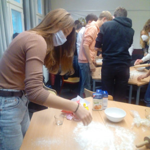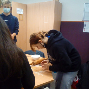 … gibt’s so manche Leckerei. Wer hat dieses Lied nicht beim Backen gehört? Die 9c hat es sich als Motto genommen und die Schule wortwörtlich in eine „Weihnachtsbäckerei“ verwandelt. Da durfte man sich nicht wundern, dass der Puderzucker von der Decke rieselte oder Zuckerguss an den Wänden klebte.