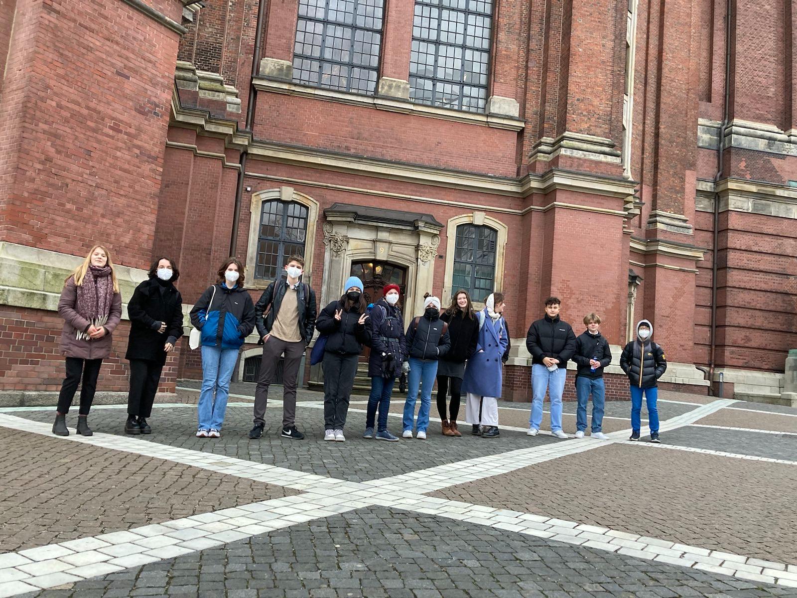 Natürlich durfte ein gewisser Anteil an Hamburger Kultur bei unserem Ausflug nicht fehlen. Gegen Nachmittag wanderten wir zum Michel und schauten uns die Kirche von innen an. Wir alle waren stark von der schönen Architektur und der großen Orgel beeindruckt. Nach einer gewissen Zeit stellte sich bei uns allen aber Hunger ein. Also begaben wir uns zu einem italienischen Restaurant, um uns für das bevorstehende Konzert zu stärken. Nach einem gesprächigem Abendessen ging es dann auf die Fähre zur Elbphilharmonie.