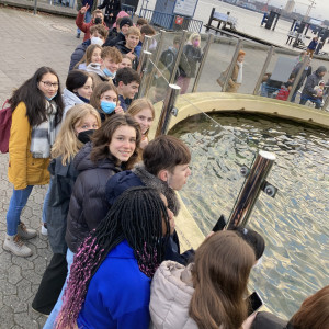 Nun folgte unser erster Ausflug in die Landeshauptstadt. Wir machten uns auf den Weg zum Geomar, um uns verschiedene Fische und Meerestiere anzuschauen. Glücklicherweise kamen wir rechtzeitig zur Seehundfütterung, was vielen ein entzücktes Lächeln ins Gesicht zauberte. Danach bewegten wir uns Richtung Innenstadt, um dort den Weihnachtsmarkt zu erkunden.