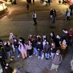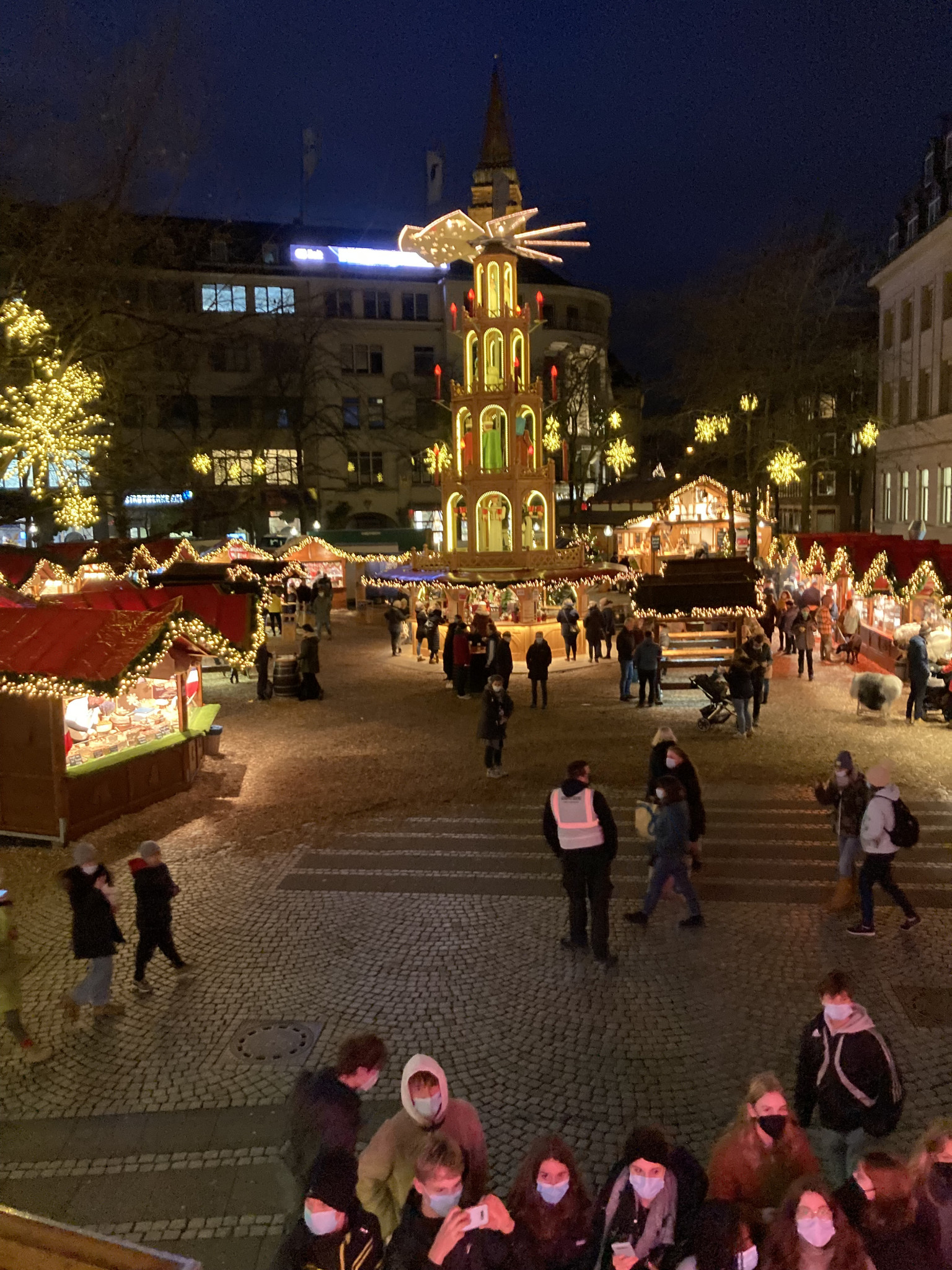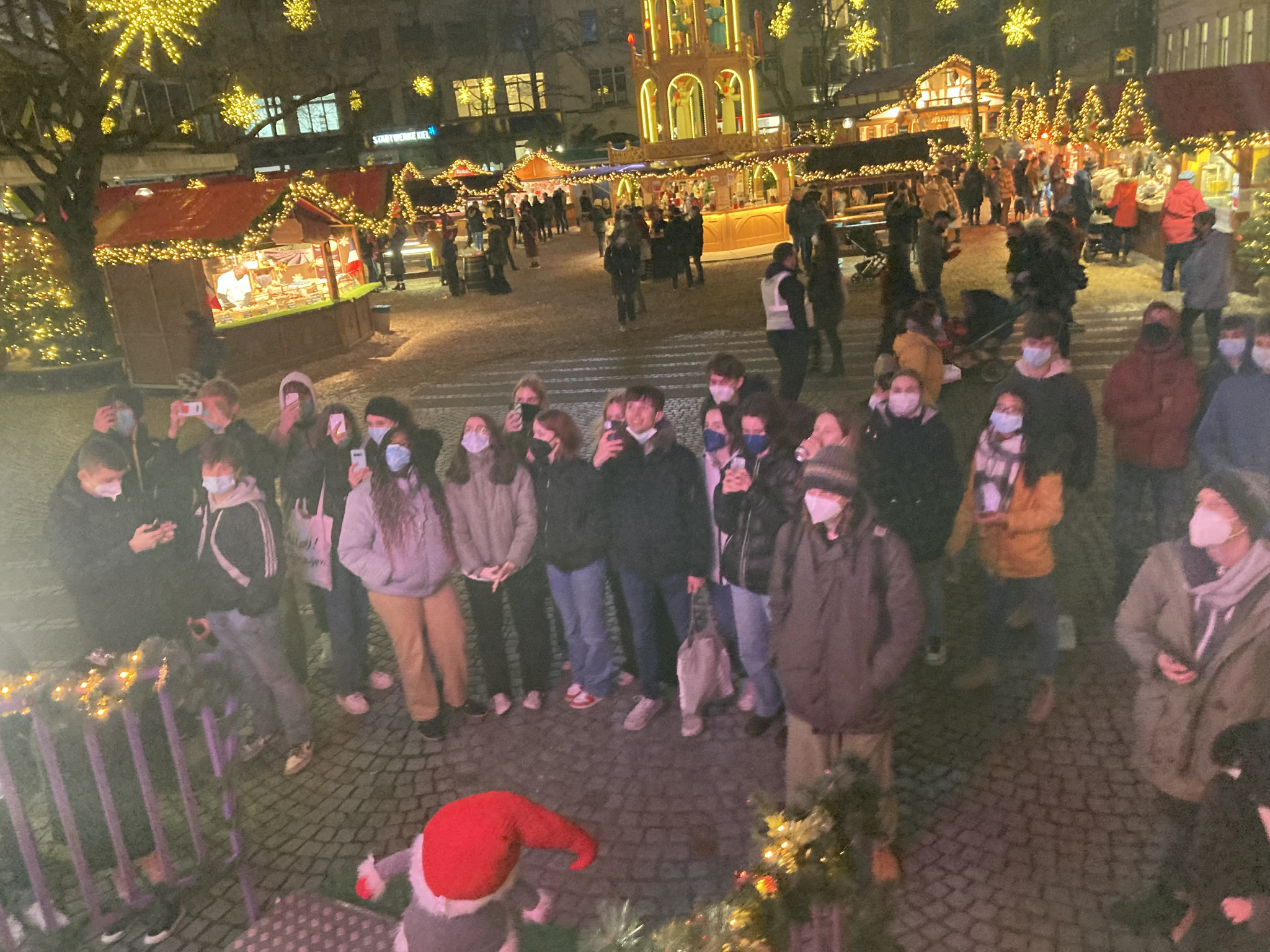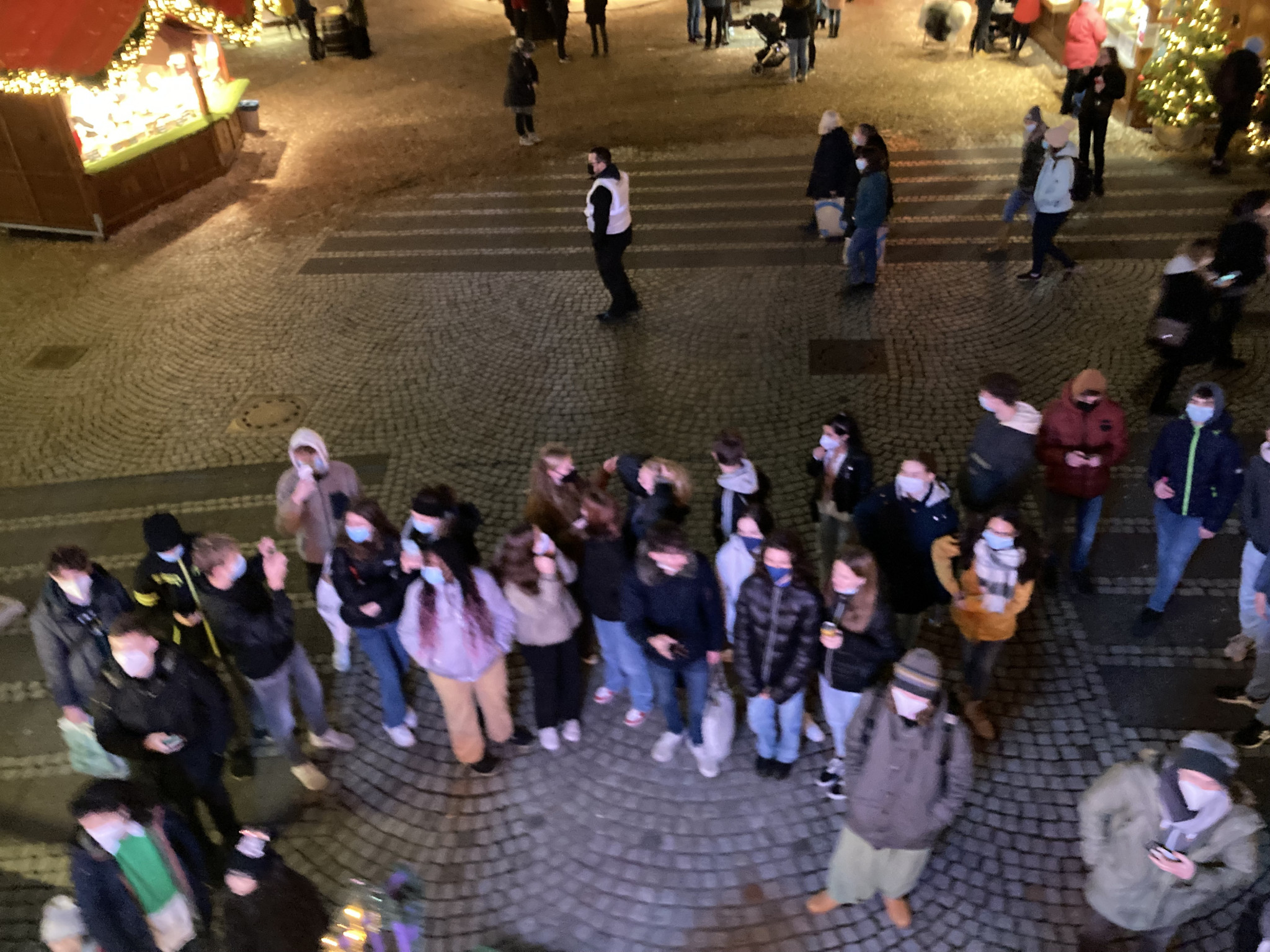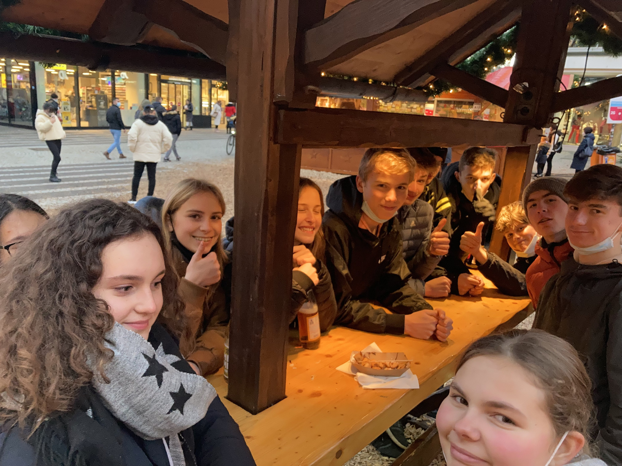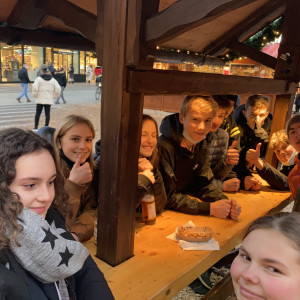 Vier Stunden später befanden wir uns dann wieder auf dem Weihnachtsmarkt, wo Pommes, Mutzen oder Bratwürste gegessen wurden. Am Abend hieß es dann noch Party! In dem riesigen Veranstaltungsraum der Jugendherberge tanzten und lachten wir, bis schließlich der Tag sich dem Ende neigte.