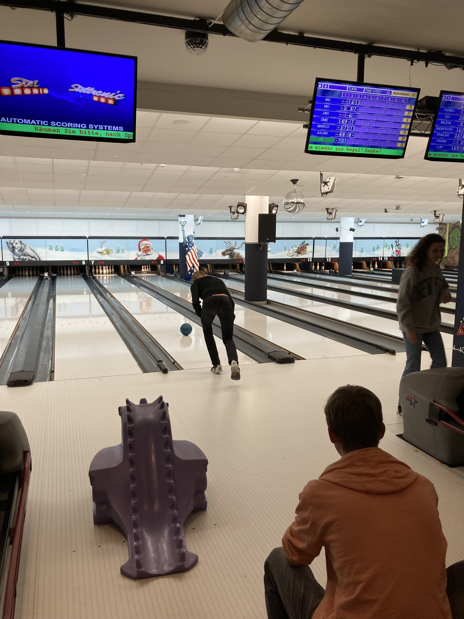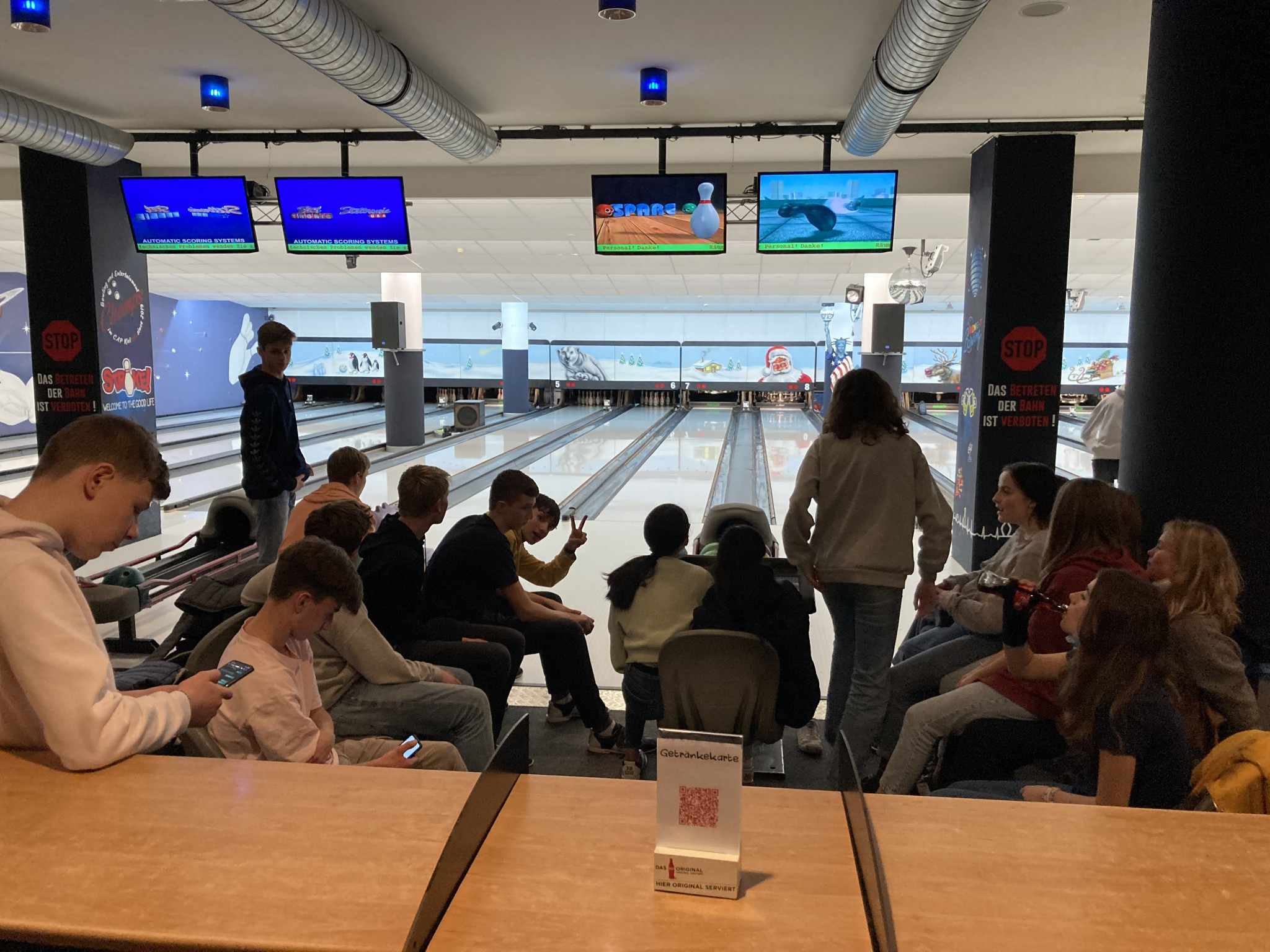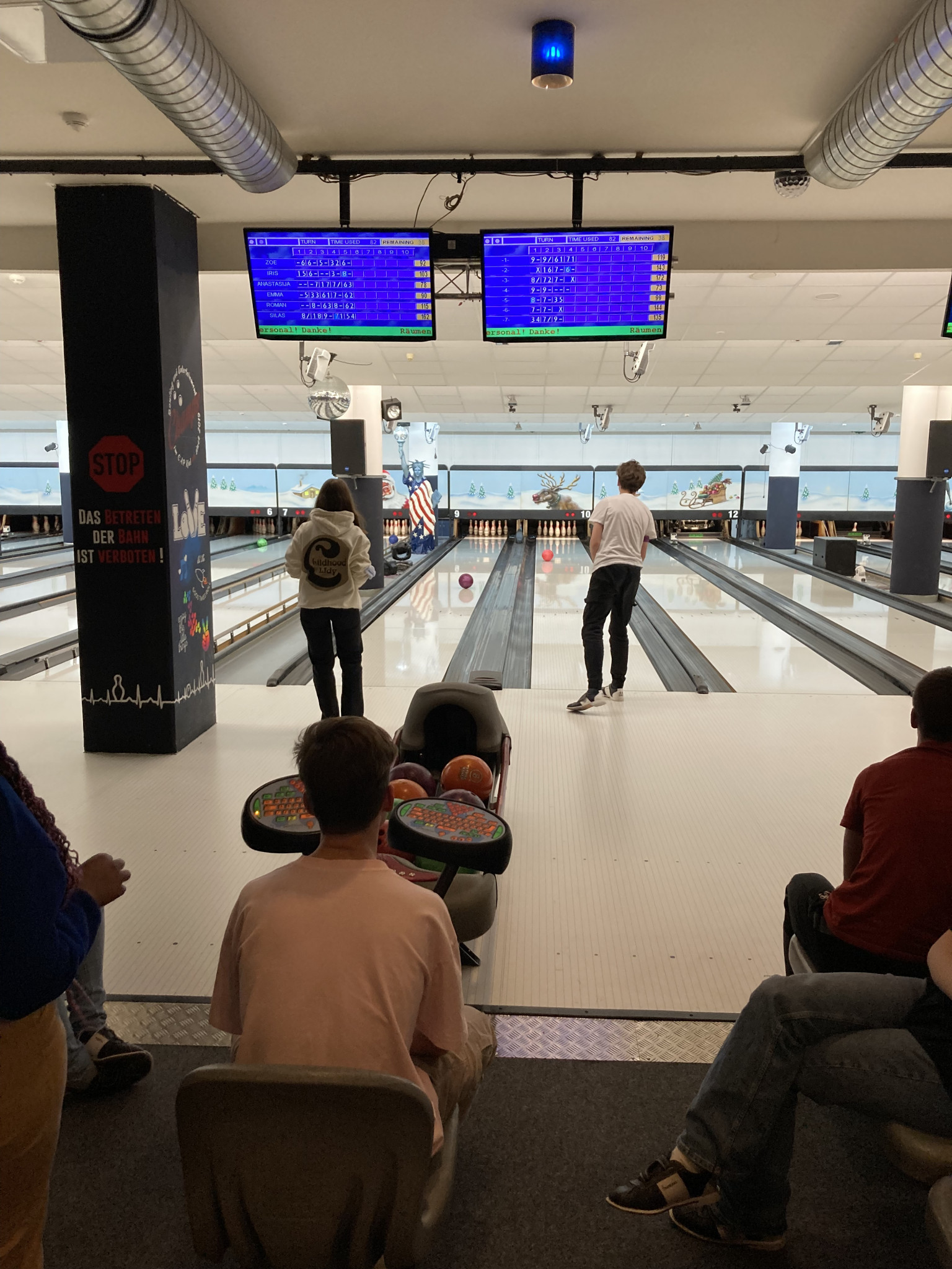 Nachdem wir in der Jugendherberge unser Abendessen eingenommen hatten, ging es schon wieder hinaus zur Bowlingbahn, bevor wir dann endlich müde in unsere Betten fallen konnten.