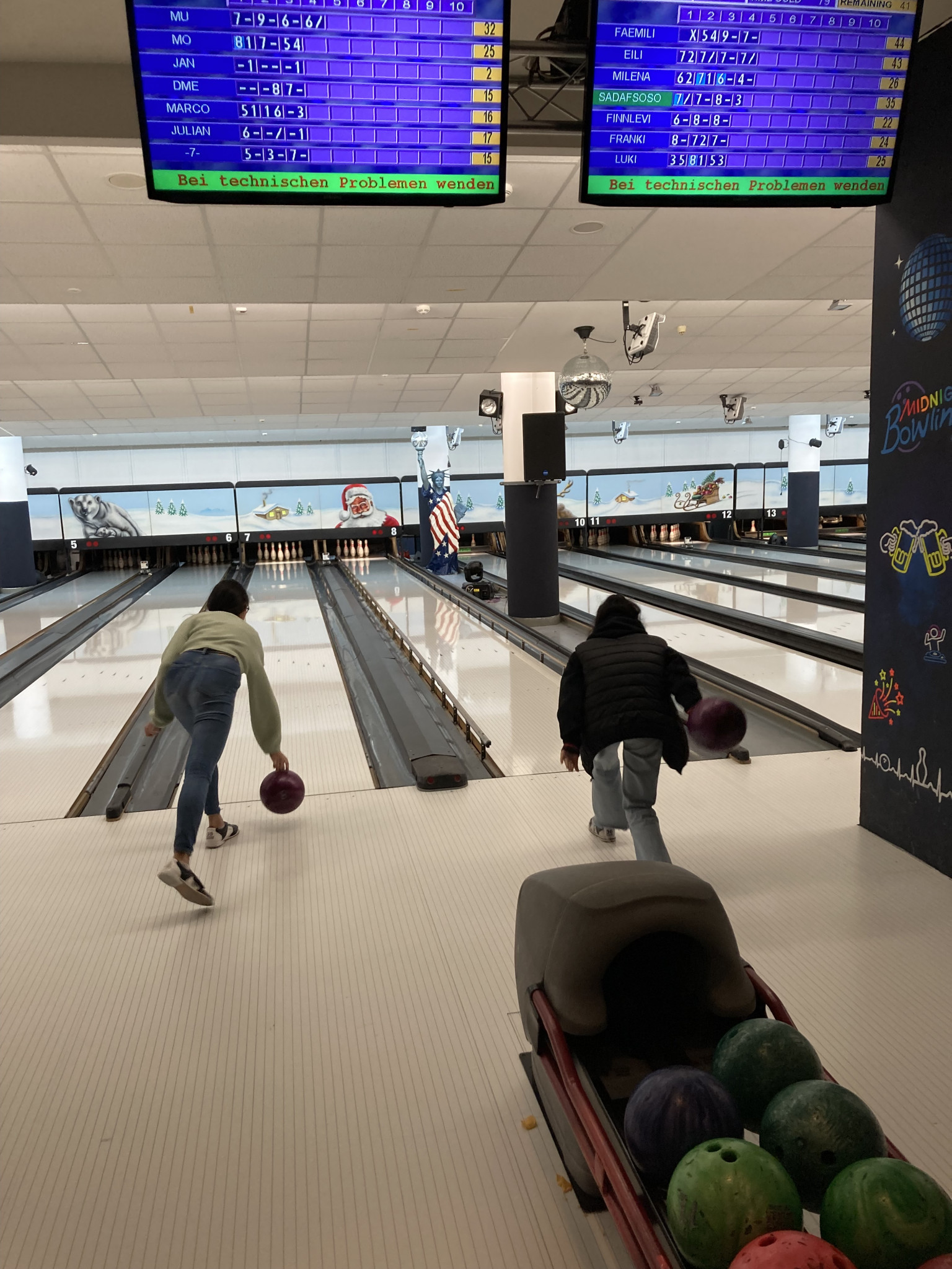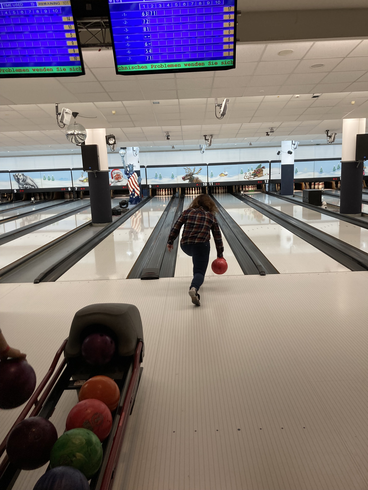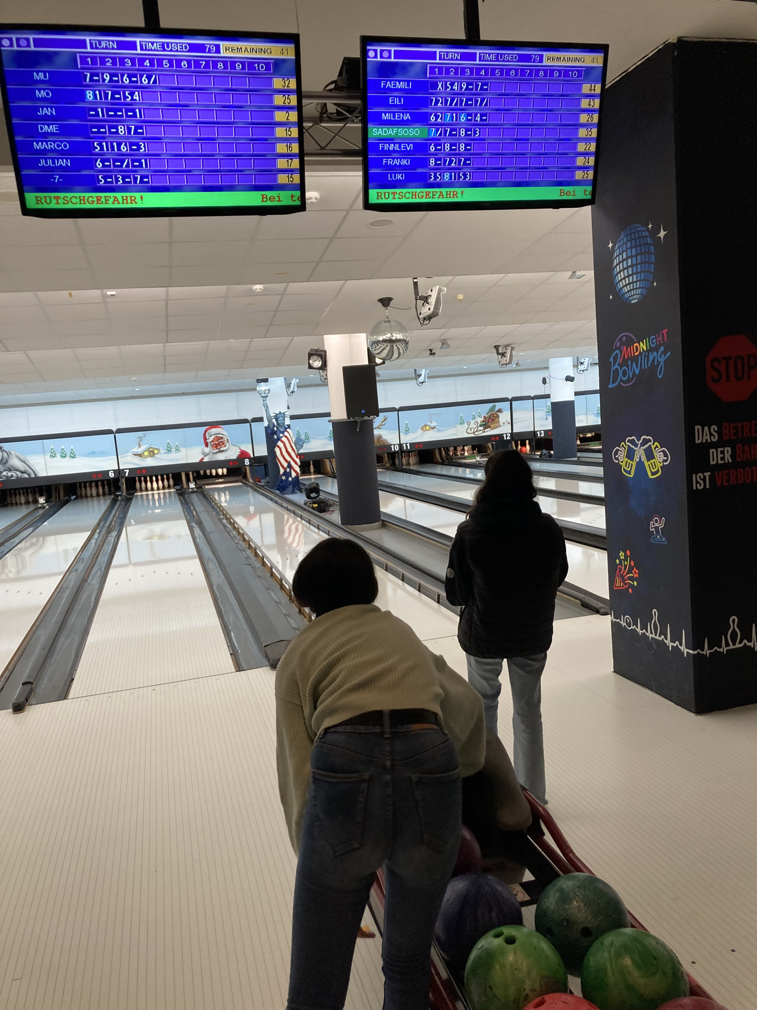 Nachdem wir in der Jugendherberge unser Abendessen eingenommen hatten, ging es schon wieder hinaus zur Bowlingbahn, bevor wir dann endlich müde in unsere Betten fallen konnten.