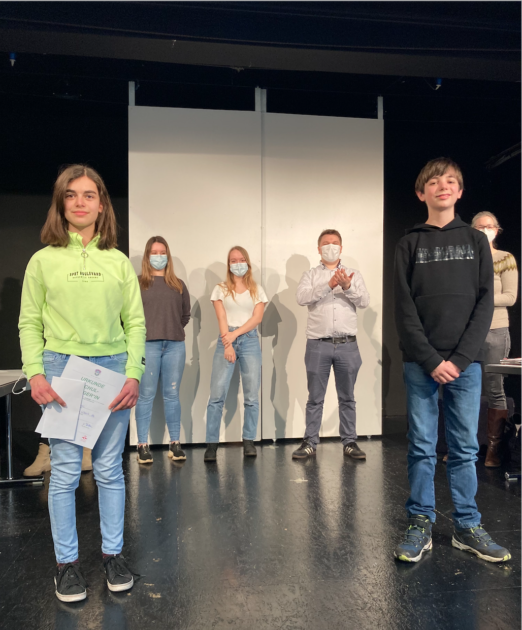 Am 15. Februar war es dann soweit: Maria Issac (8b) und James O’Connor (8d), die zuvor bereits die Klassenentscheide in ihren Lerngruppen gewonnen hatten, traten im Studio vor großem Publikum im Schulfinale des 8. Jahrgangs gegeneinander an! Die Jury: Sophia Balke aus der Q1a, Schulpraktikantin Michelle Siewert sowie die Lehrkräfte Katarina David, Kathrin Felten und Marcus Radloff. Die zwei Vorlesenden lieferten sich ein äußerst knappes Rennen – das Publikum tobte nach beiden Vorträgen nahezu gleichermaßen – doch in letzter Konsequenz hatte Maria die Nase, mit einem Abstand von einem einzigen Punkt, vorn und wurde somit zur Schulsiegerin des 8. Jahrgangs gekürt, weshalb sie in Hamburg für das Johanneum in der Kategorie A1 antreten darf.