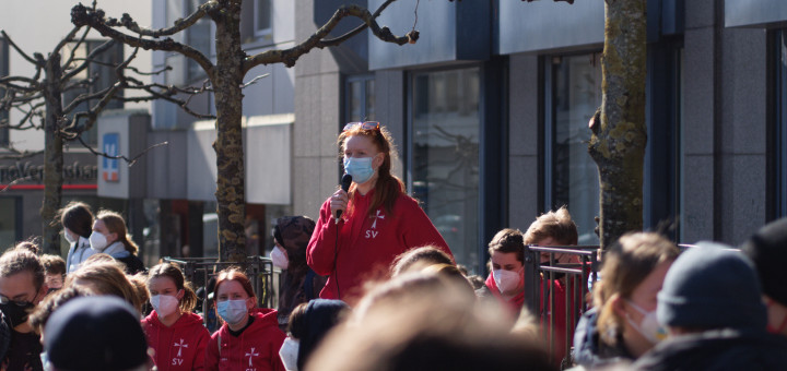 Am Donnerstag, den 10. März, haben wir Lübecker Schulen uns um 12.00 am Klingenberg getroffen um für den Frieden in der Ukraine zu demonstrieren. Dabei waren ganze 2500 Schüler:innen, mit denen wir durch unsere Innenstadt bis zum Holstentor gelaufen sind. Wir haben gemeinsam Sprüche wie „Hoch die internationale Solidarität“ und „Frieden schaffen ohne Waffen“ gerufen. Wir haben Kundgebungen gehört und zusammen auf ein schnelles Ende des Krieges gehofft.