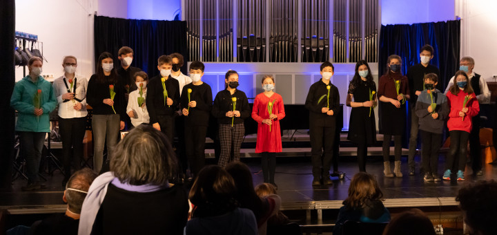 Am Ende gingen nochmal alle Musiker:innen auf die Bühne und jeder von ihnen bekam eine Tulpe überreicht. Herzlichen Dank an August Hübner (Ea), Ferdinand Hübner (Q2c), Wenzel Hübner (7a), Julie Janz (9c), Shinya Janz (9c), Moana Kalettka (Q2c), Niklas Kipshagen (6b), Jaron Kollmeier (8d), Jakob Kunz (6b), Nele Kucht (6d), Theo Nabers (7c), Lara Nöthlich (Q2c), Lissy Reim (Ea), Tammo Royl (5b), Carlo Schmidt (6d), Anna Ziegelmann (Ed) und natürlich Herrn Schulz!