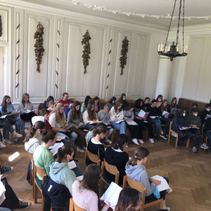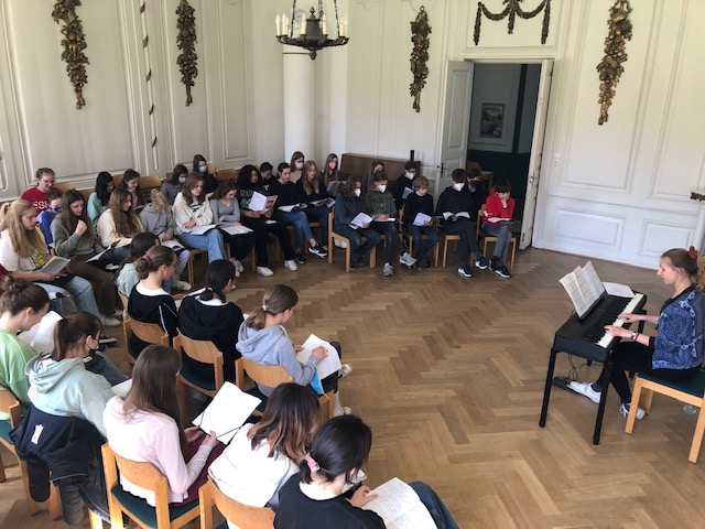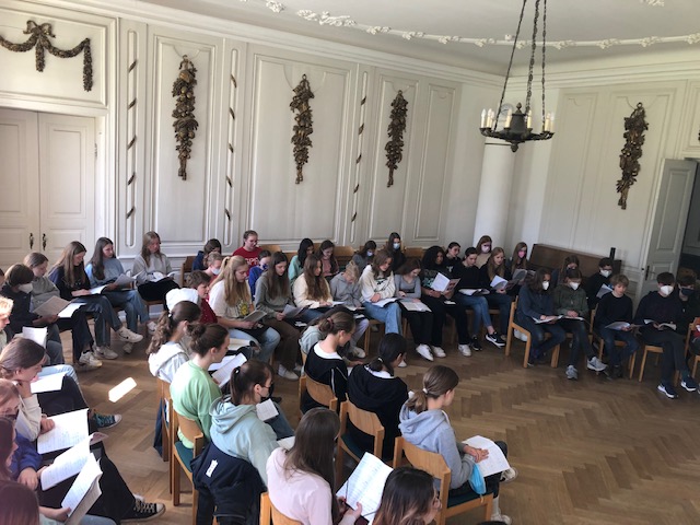 „Jetzt wo ich wieder hier bin, merke ich erst, wie sehr mir das gefehlt hat…“ Fast wehmütig wird Musiklehrer Hartmut Jung, als die zwei großen Reisebusse vor dem imposanten Schloss in Noer parken – oder besser „auf Noer“, wie es unter Johanneern heißt. Nach zwei Jahren ohne Chor-, Orchester- und Bandfahrten sind nun nach der langen Coronadurststrecke die ersten 109 Schüler:innen aus der Mittelstufe wieder in die drei Gebäude eingezogen, um dort drei Tage lang zu musizieren und sich zu amüsieren. Reitstall, Inspektorenhaus und Schloss – auch Ehemalige bekommen glänzende Augen, wenn diese drei Namen fallen. Vermutlich ist es besser, dass Lehrer:innen nicht alle Geschichten kennen, die so im Laufe der Jahre hier entstanden sind….