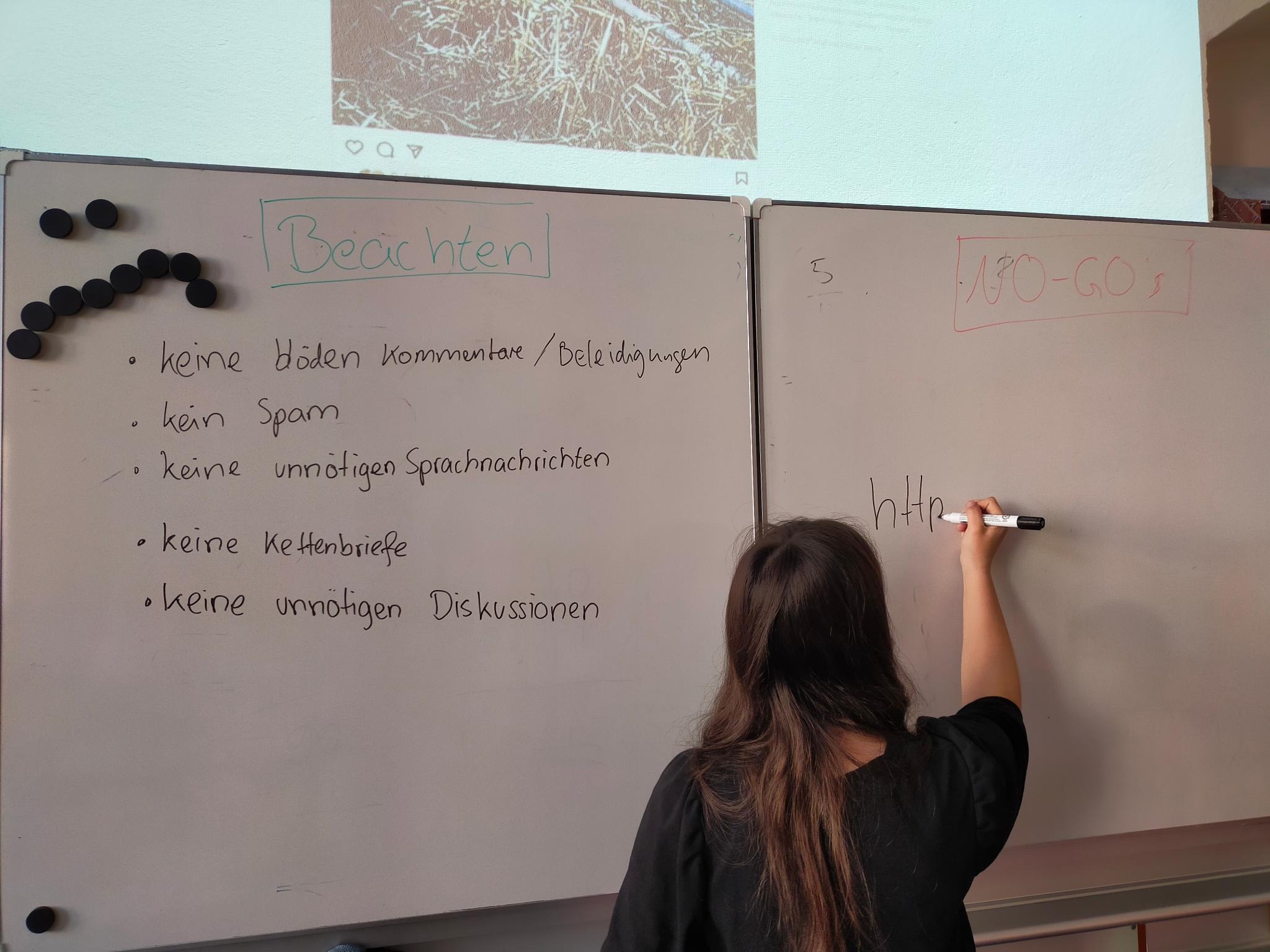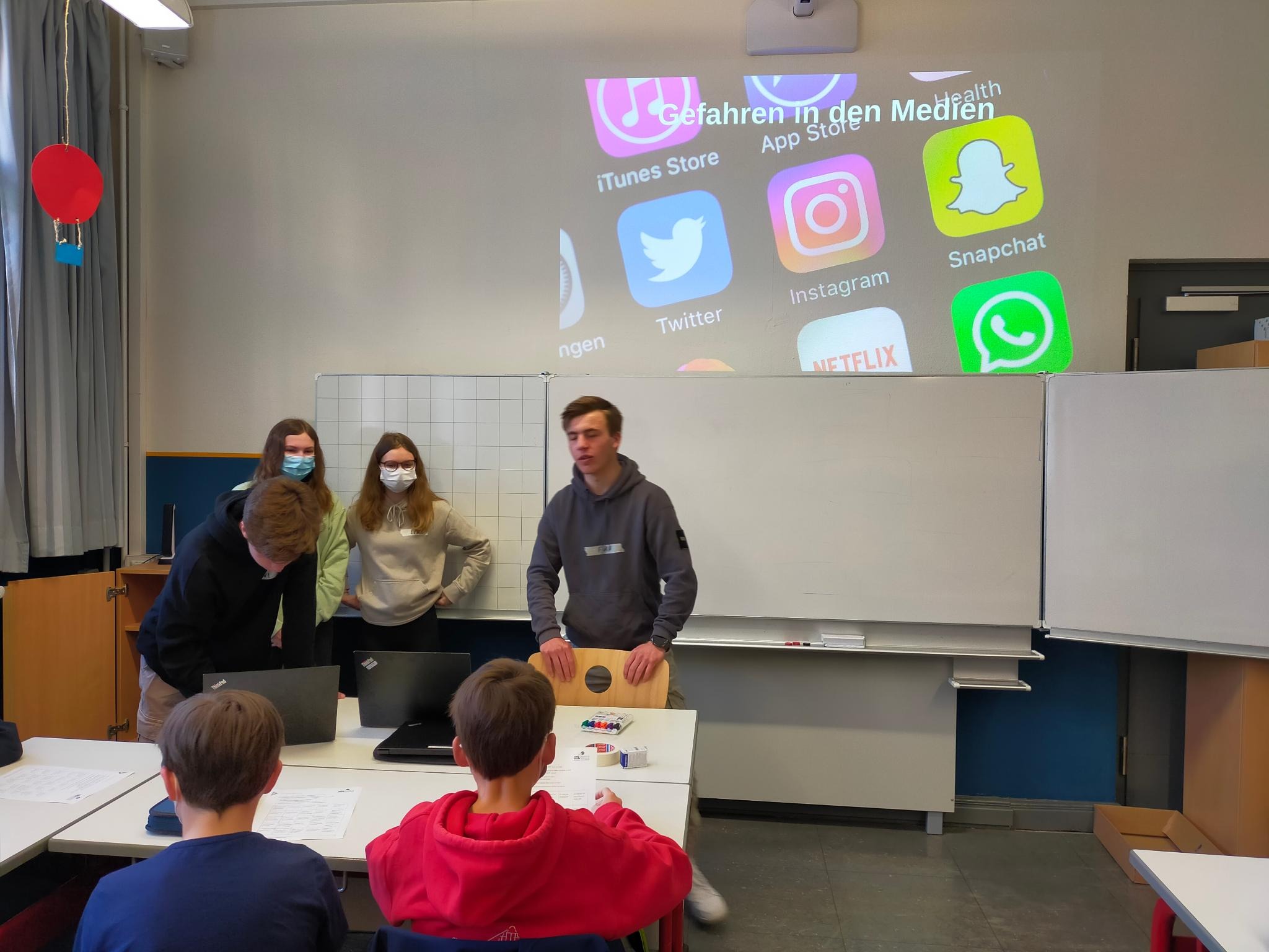 Deswegen kamen als Netpiloten ausgebildete Neuntklässler:innen in die sechsten Klassen, um genau diese Themen zu besprechen und zu diskutieren. Hierbei wurde dieser Bereich mit kleinen Spielen und Gruppenarbeiten vorbereitet. Es wurde gequizzt, geredet und sich ausgetauscht. Vor allem über soziale Medien und Cybermobbing lernten die Sechstklässler:innen viel Neues. Auch wurden das Verhalten in Chatgruppen sowie allgemeine Regeln zum Weiterleiten von zum Beispiel Bildern intensiv diskutiert und besprochen.
