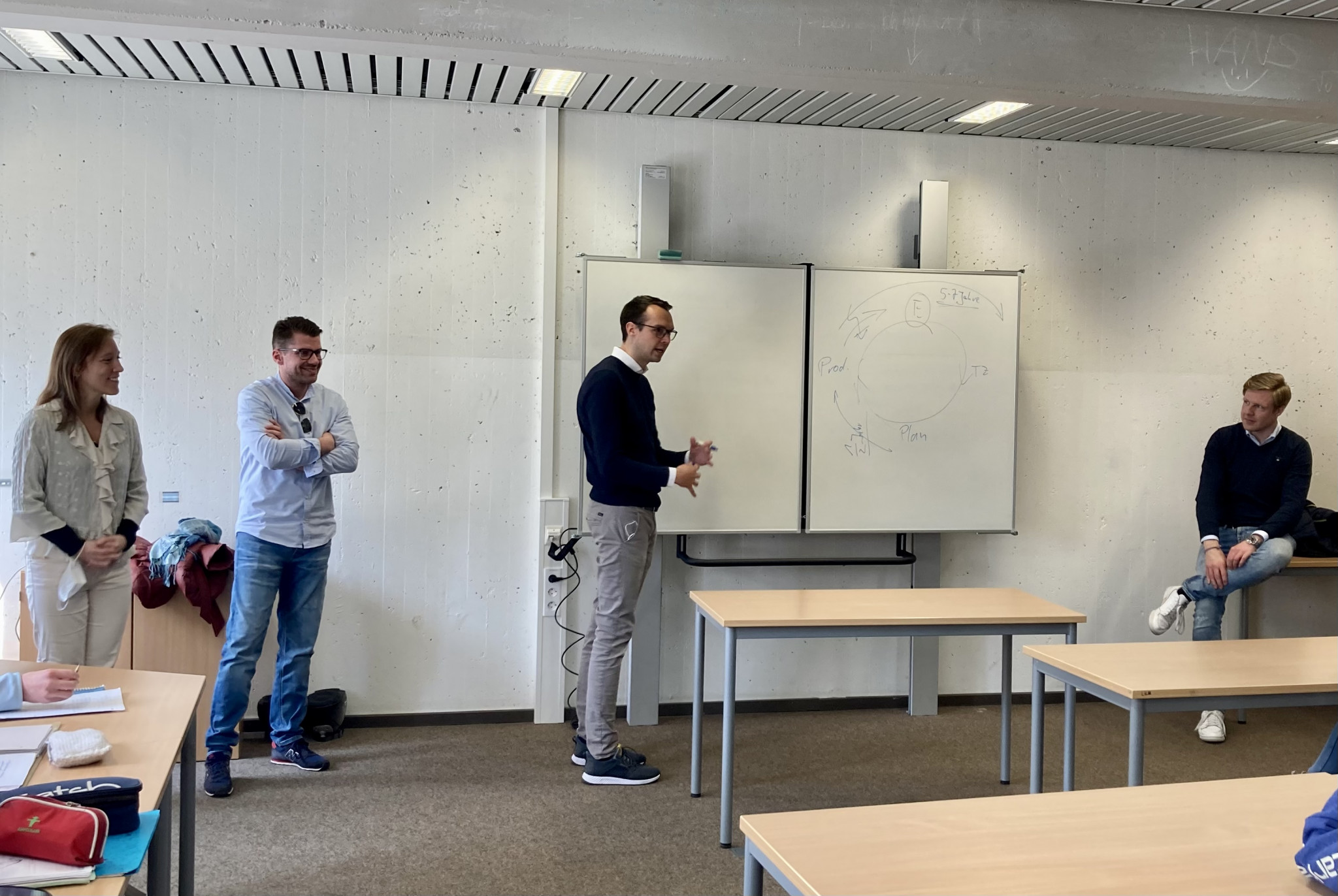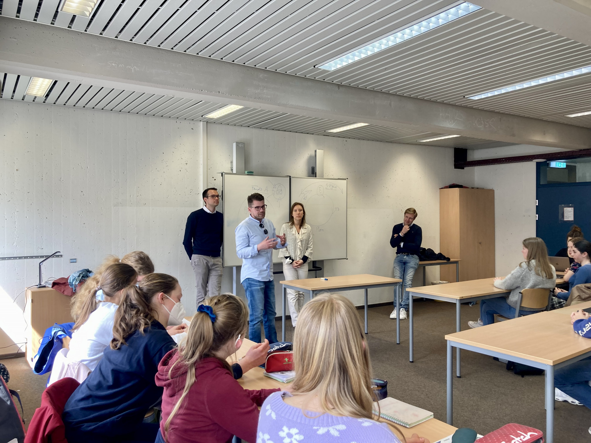 Doch wie geht das? Sie sind da, um junge Menschen bei den ersten Schritten in die Wirtschaft zu unterstützen und der wirtschaftlich-interessierte Jugend beim Karrierestart zu helfen. Vertreten wurden die Wirtschaftsjunior:innen am Johanneum vorletzten Freitag von Alex, Simon und Jannik. Susanna, Sängerin und selbstständige Gesangslehrerin, ist extra zusätzlich dazu gekommen.