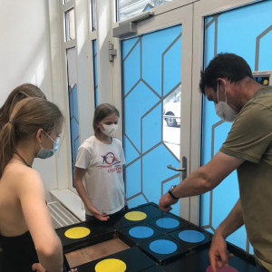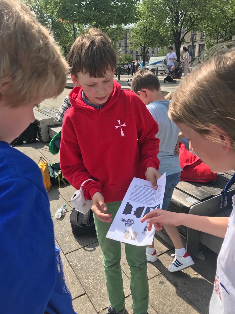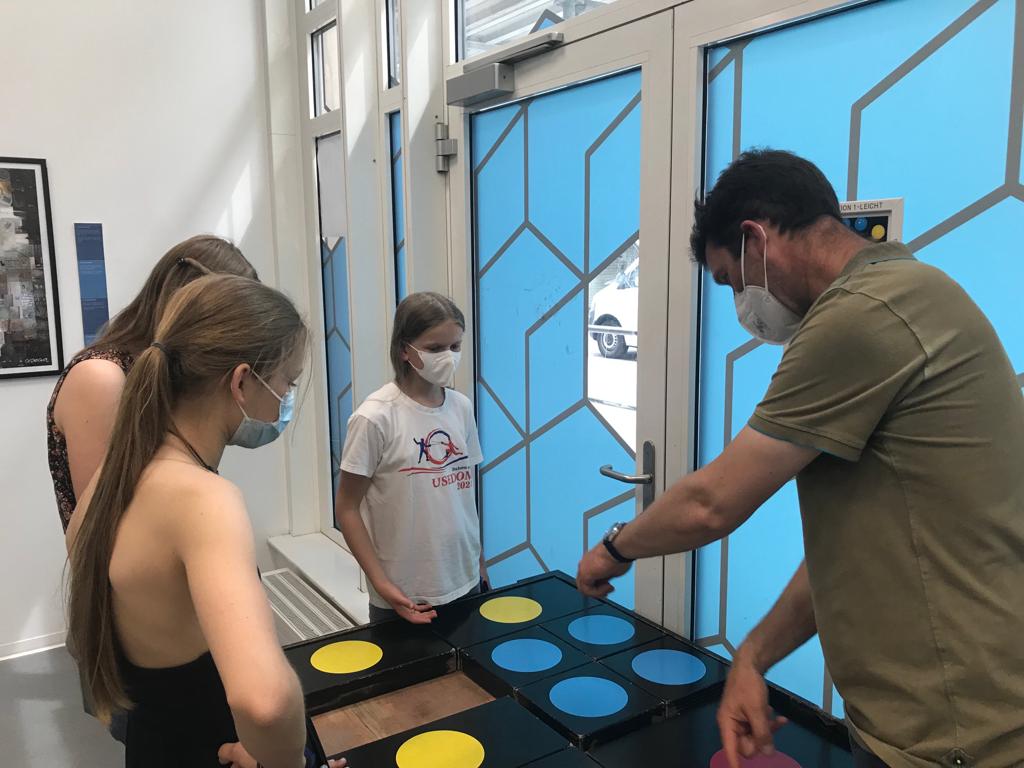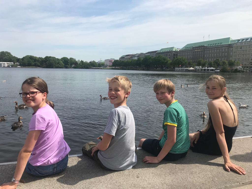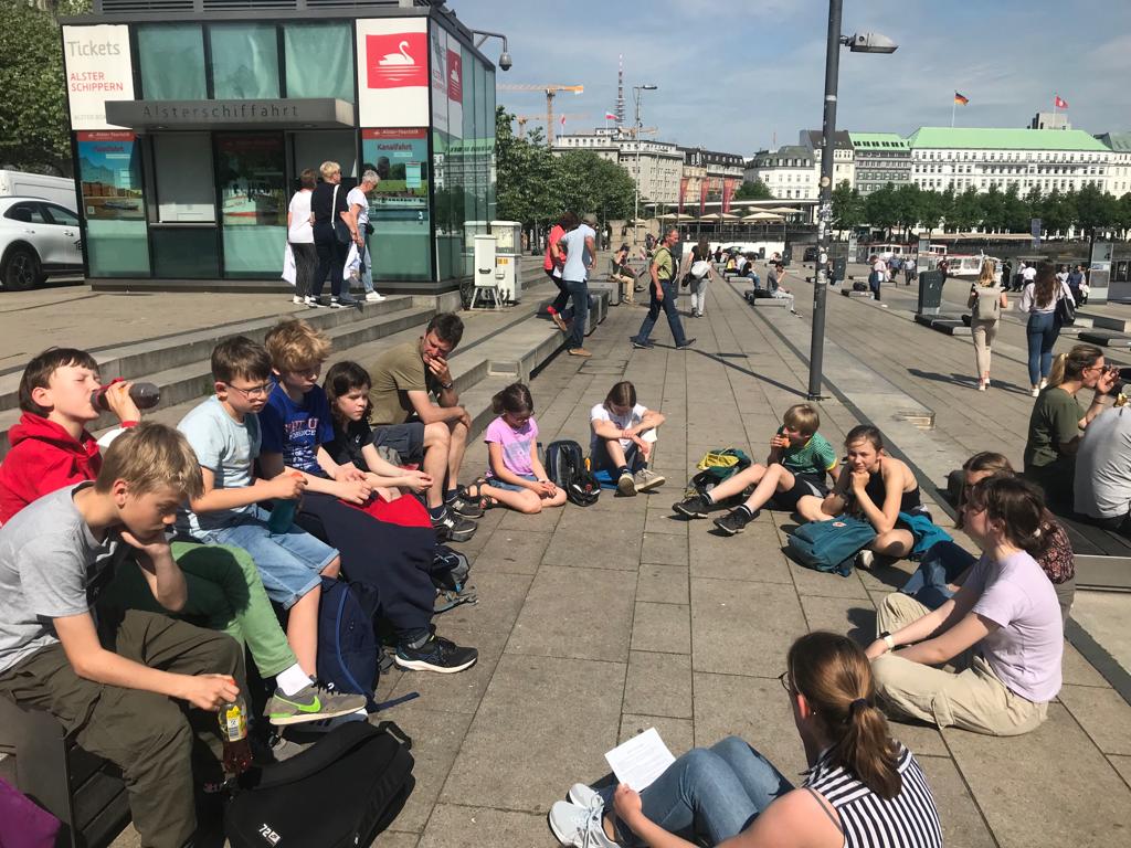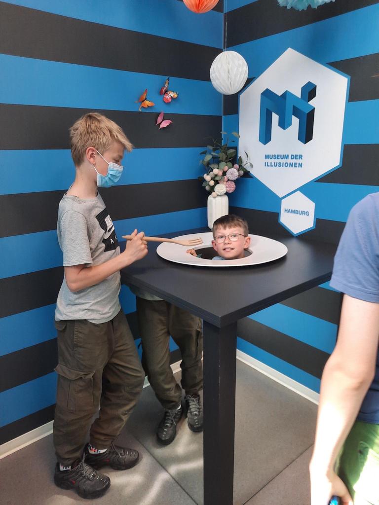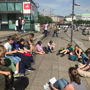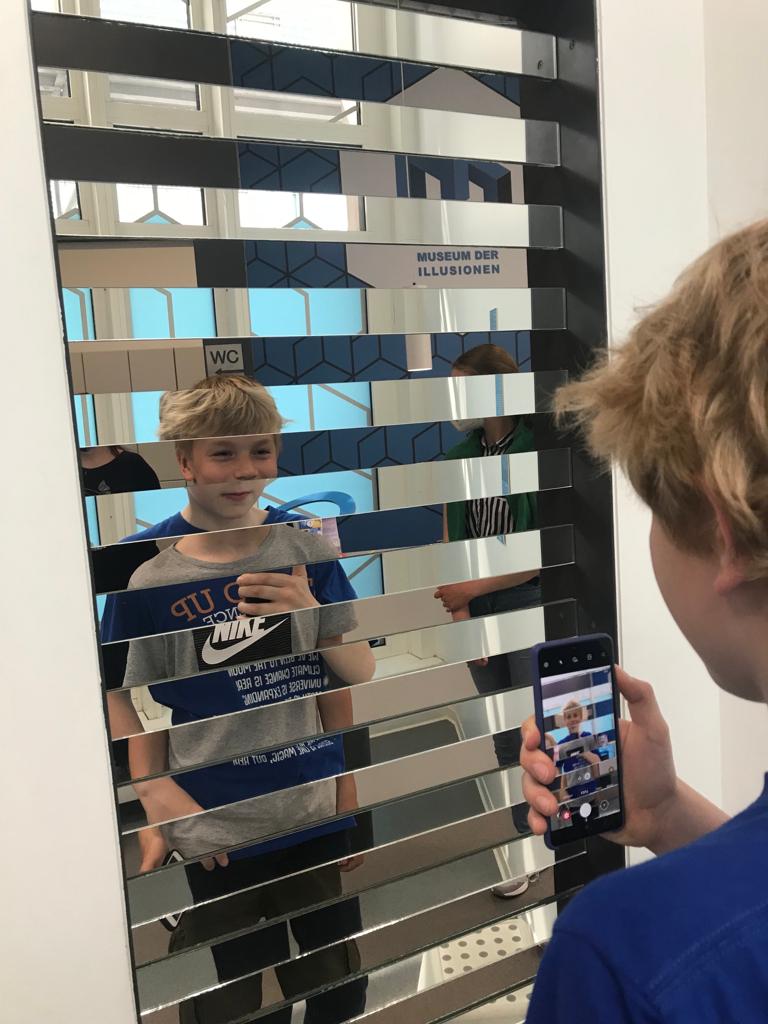 Gemeinsam fuhr diese bunt gewürfelte Gruppe mit dem Zug nach Hamburg. Zum Glück war es der bestimmt heißeste Tag im Jahr mit 31 Grad! und sie konnten sich auf den Treppen an der Alster niederlassen. Dort hatten die jüngeren Schülerinnen und Schüler bei einem Workshop erst die Möglichkeit, mehr über optische Täuschungen zu erfahren und dann selbst mal das ein oder andere zu zeichnen oder zu fotografieren. Später am Vormittag im Museum hieß es vor allem ausprobieren und staunen! Selbstständig konnten die Kinder durch die Räume laufen, Fotos in einem über Kopf stehenden Zimmer machen und schwankend durch einen sich drehenden Tunnel laufen. Und nach einem Eis in der Hamburger Fußgängerzone ging es dann auch mit vielen neuen Eindrücken nach Lübeck zurück.