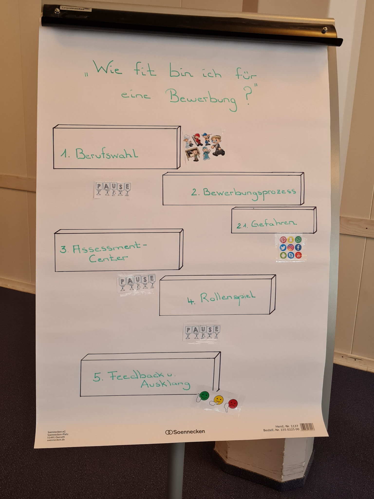 Nachdem wir eine Einführung in das Thema Berufswahl hatten, ging es los und wir beschäftigten uns mit dem Themenblock rund um Bewerbung. Neben den üblichen Dingen wie der passenden Kleidungswahl, dem pünktlichen Erscheinen oder dem Auftreten im Gespräch wurden uns Dinge genannt, die in einem Bewerbungsgespräch zu beachten seien. So wurde uns mitgegeben, dass auch eine Überprüfung der Online- und Social Media-Präsenz stattfinde.