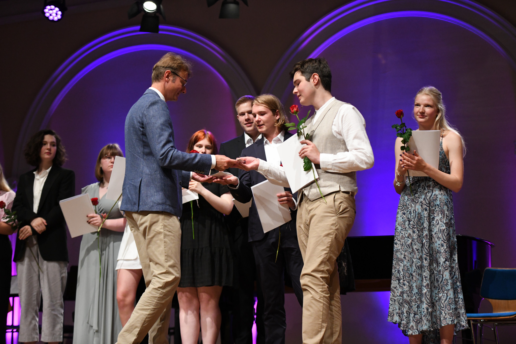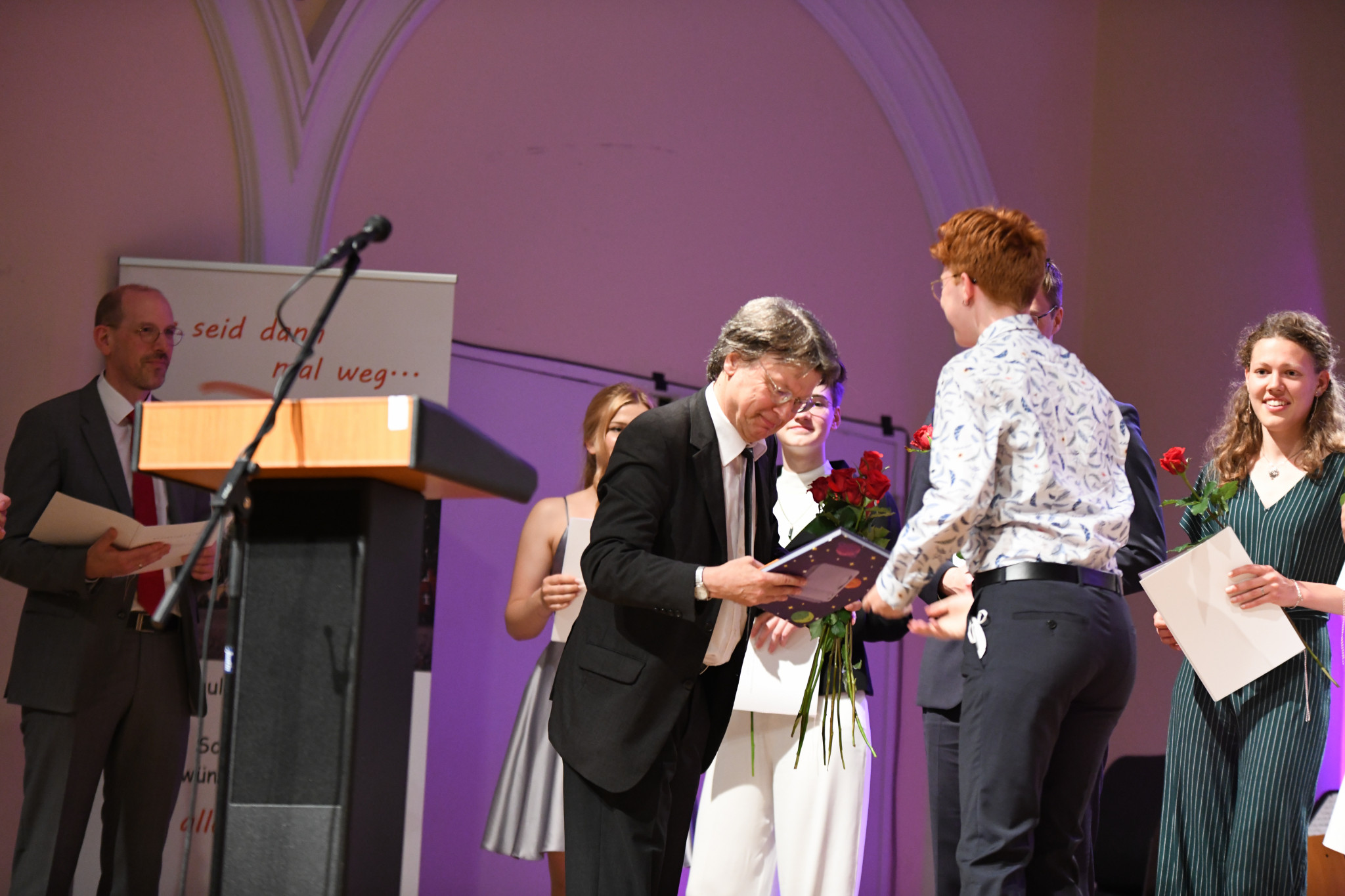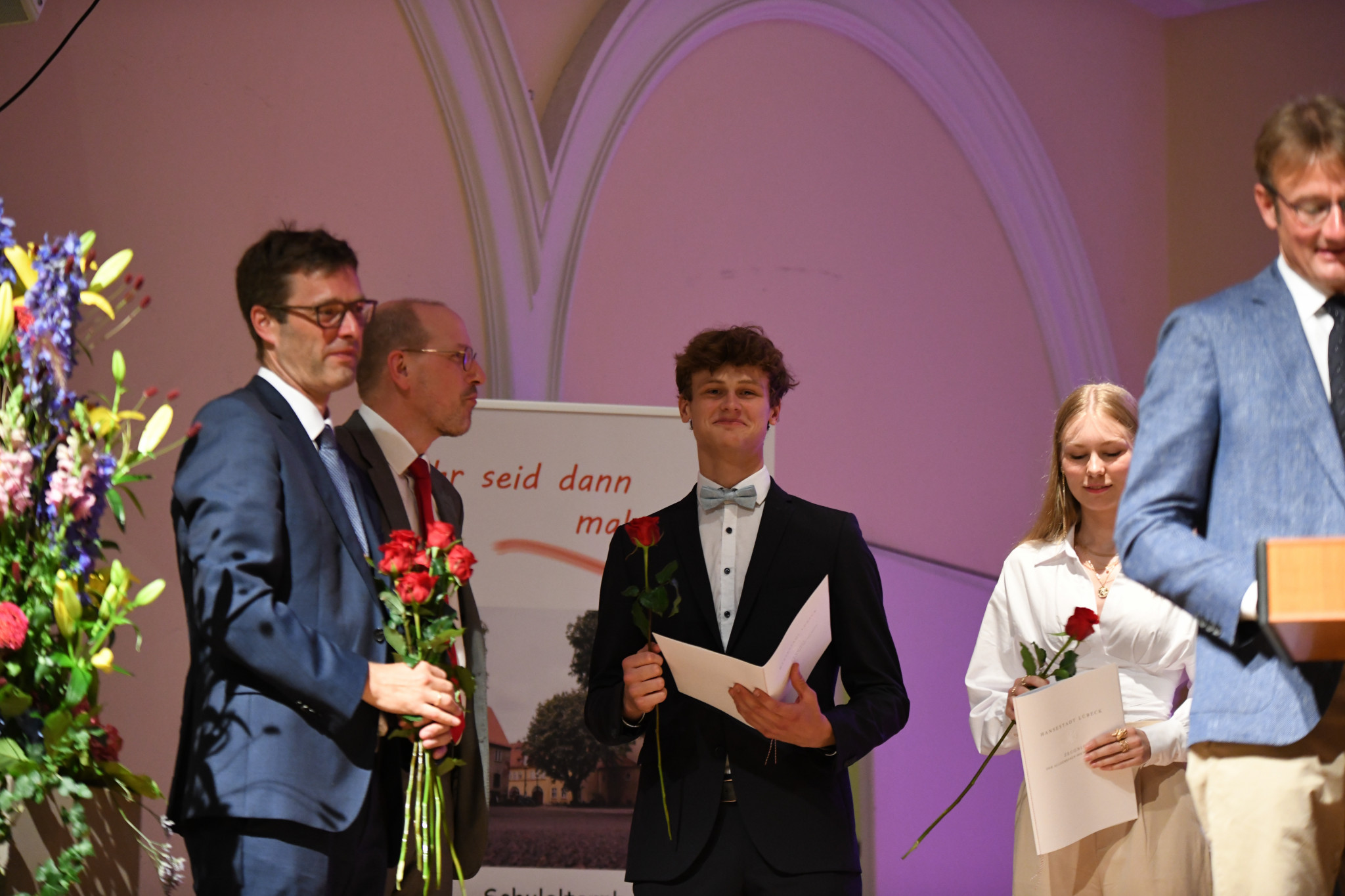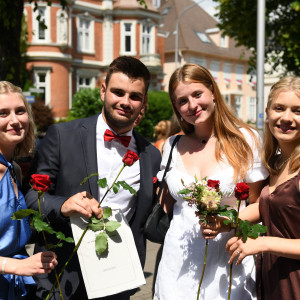 Zum ersten Mal seit 2019 konnte die Abiturentlassungsfeier am 25. Juni 2022 wieder festlich im Lübecker Kolosseum begangen werden. Musikalisch von der Q2c sowie Mitgliedern des Jahrgangs umrahmt begleiteten nicht nur die Angehörigen und das Kollegium die Abiturient:innen, sondern auch goldene und sogar zahlreiche diamantene Abiturienten.
