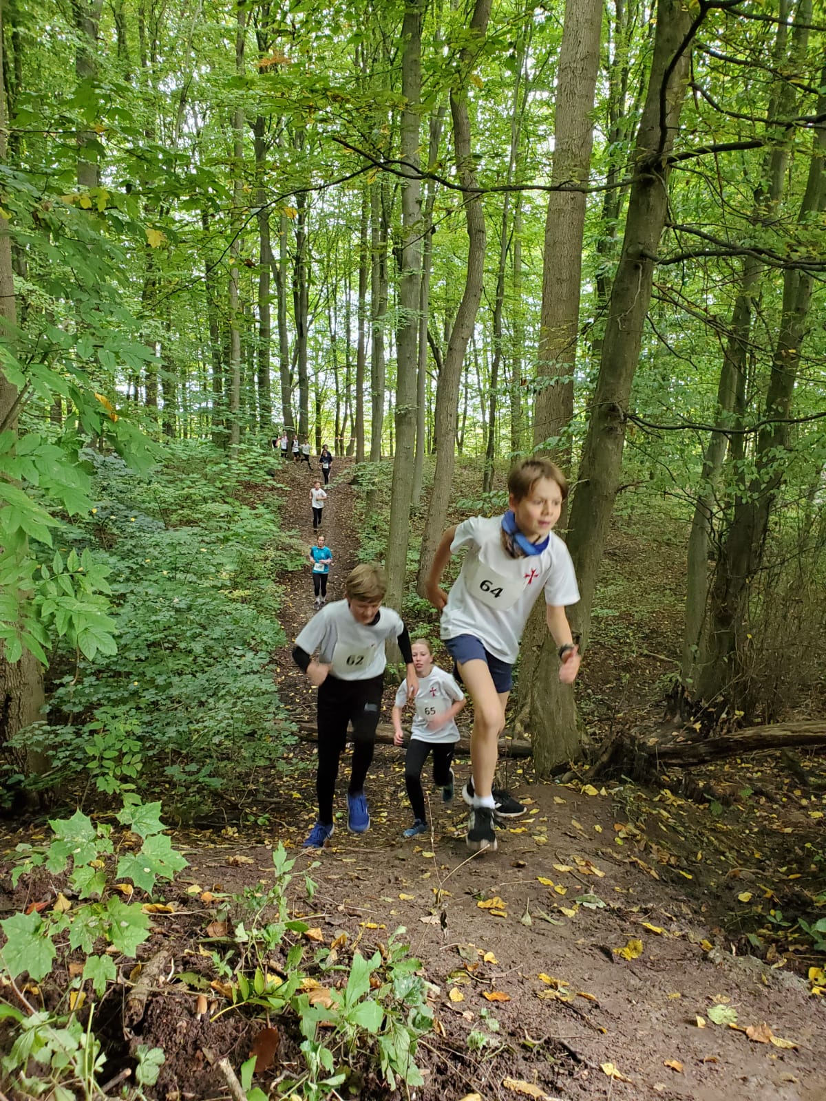 Mit Laufsachen im Gepäck ging es mit den Fahrrädern, zehn Teilnehmer:innen, Paten und Sportlehrerin Frau Scheibe entlang des Kanals zur Heinrich-Mann-Schule nach Moisling. Dort angekommen wurden alle freundlich begrüßt und trafen sogar auf Bekannte. Als es endlich an den Start ging, waren wir sehr aufgeregt. Ein Pfiff- und schon liefen alle los: Ungefähr 2 Kilometer flitzten alle über Waldwege, unwegsame Wiesen und schließlich auf dem Sportplatz über die Ziellinie.
