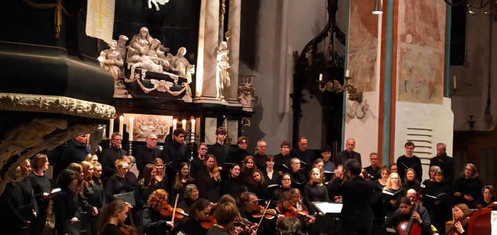 Während in der Altstadt noch die letzten Vorbereitungen für den Weihnachtsmarkt liefen, sang der Oberstufenchor, zusammen mit dem Eltern-Lehrer:innen-Freund:innen-Chor unter der Leitung von Eva-Maria Salomon die Kantate „Selig sind die Toten“ Telemanns anlässlich des jährlich stattfindenden gemeinsamen Musik-Gottesdienstes in der St. Jakobi-Kirche. Romy Pohl (Sopran), Karl Hänsel (Tenor) und Simeon Nachtsheim (Bass) traten als Solist:innen auf und wurden von dem Kammerorchester des Johanneums, das von einigen Aushilfen bereichtert wurde, unterstützt.