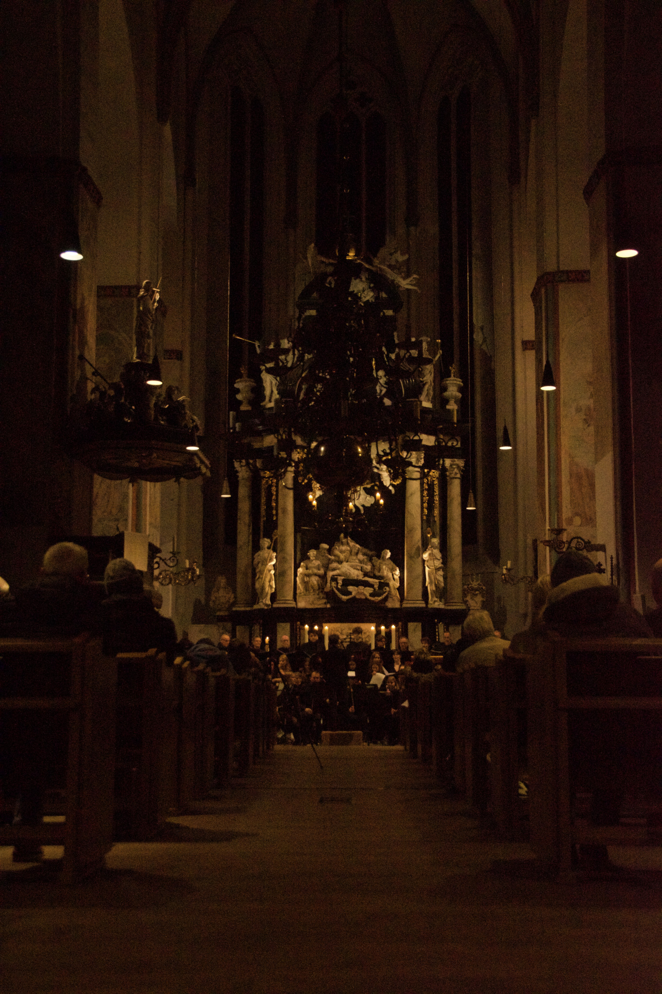 Nach einem ersten Teil der Predigt war es dann für alle Mitwirkende an der Zeit mit Telemanns Musik die Kirche mit erfüllenden Klängen zu erleuchten, kalte Hände warm werden zu lassen und gemeinsam einen anfliegenden Hauch von Weihnachtsstimmung zu verbreiten.