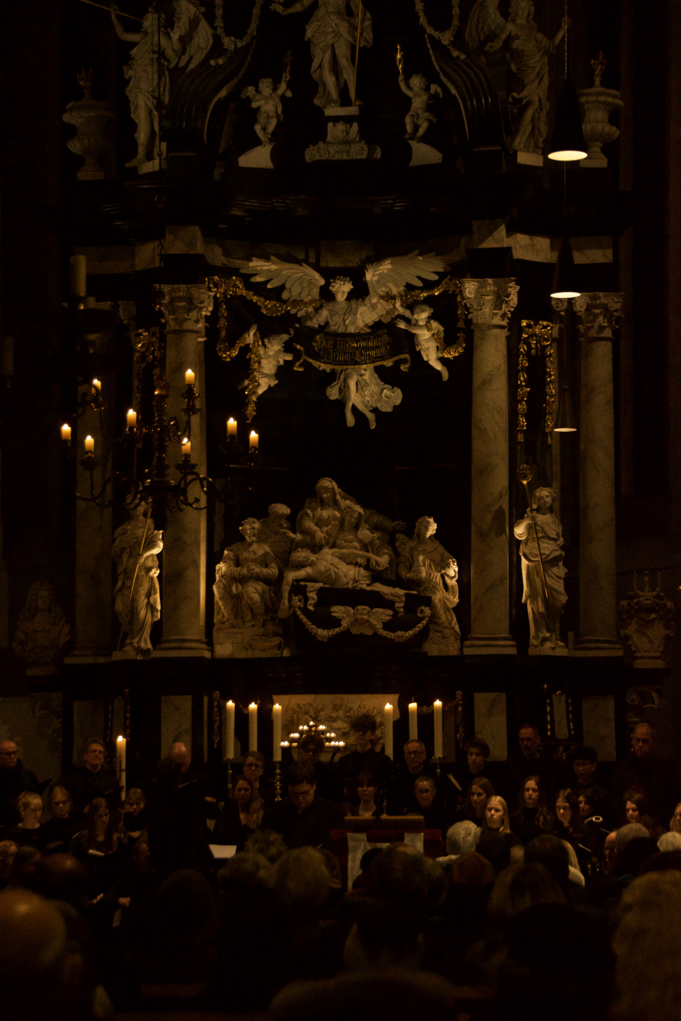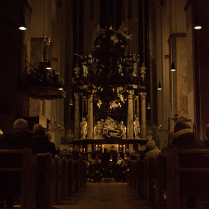 Als die Namen der Verstorbenen innerhalb der St. Jacobi Gemeinde dieses Jahres vorgelesen werden, ist es in dem großen, von Kerzenlicht durchflutenden Kirchenschiff andächtig still. Den Toten im Raum der Stille noch eine letzte Ehre erweisen, der Gestorbenen des vergangenen Jahres gedenken, bevor der Weihnachtstrubel wieder losgeht, Menschen auf der Suche nach Geschenken durch die Stadt hetzen und das Jahr langsam zu Ende geht. „Selig sind die Toten“. So heißt schließlich die Kantate von Georg Friedrich Telemann, die zum Vorabend des Totensonntags die Jacobi-Kirche in melancholische Stimmung hüllte und die kommende Weihnachtszeit mit barocken Klängen einläutete.