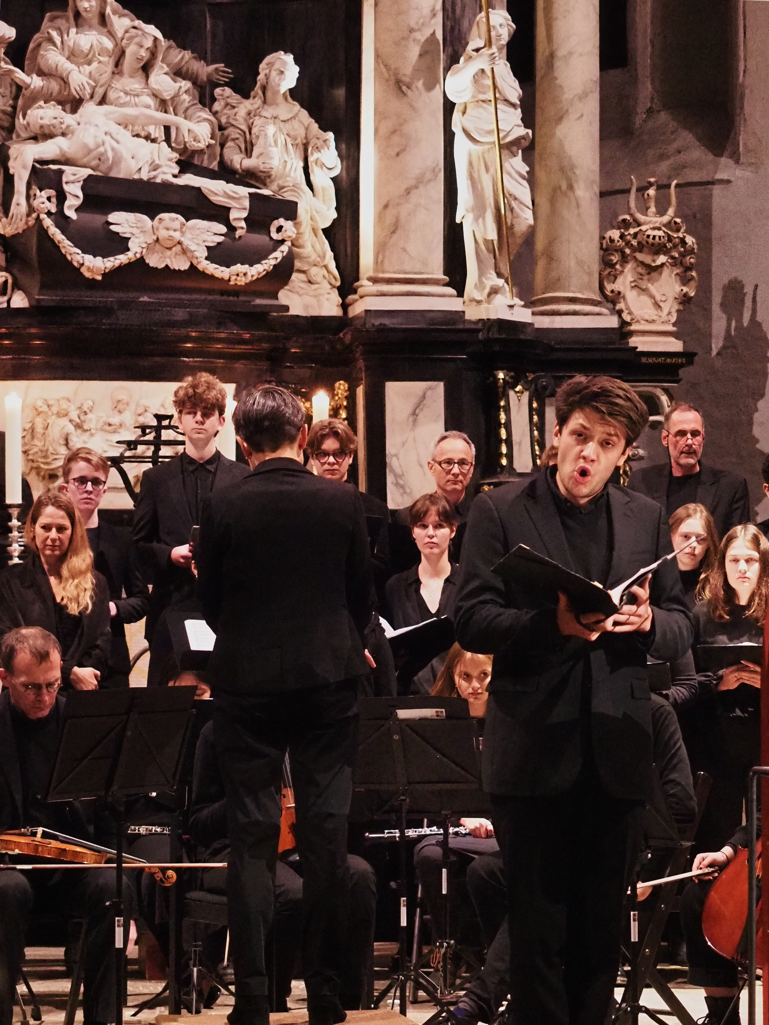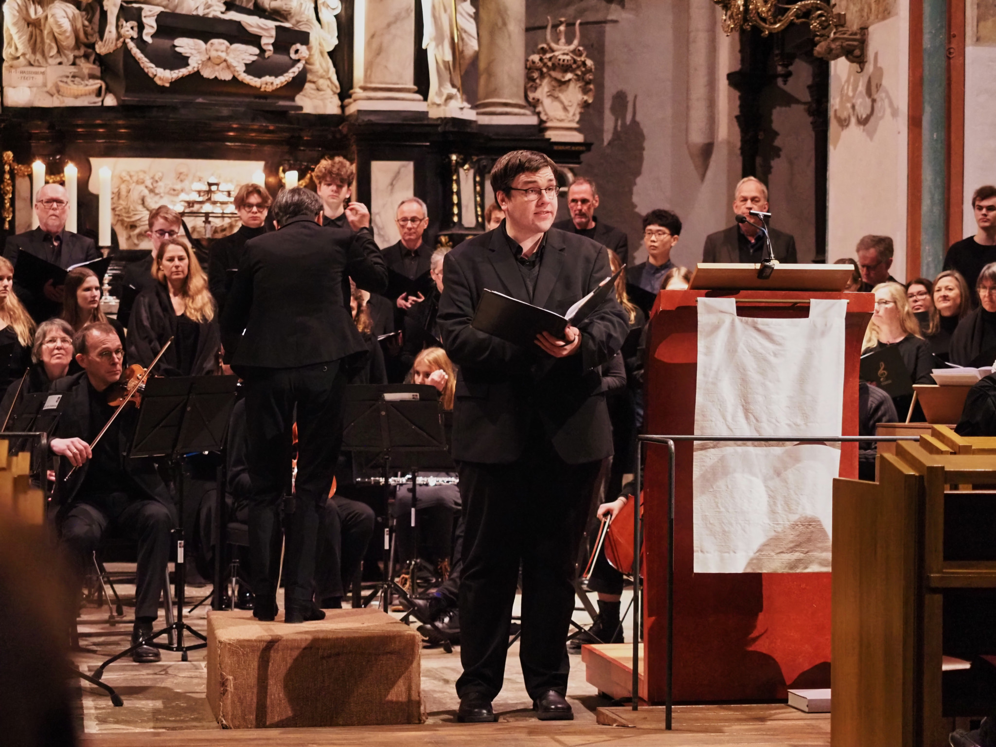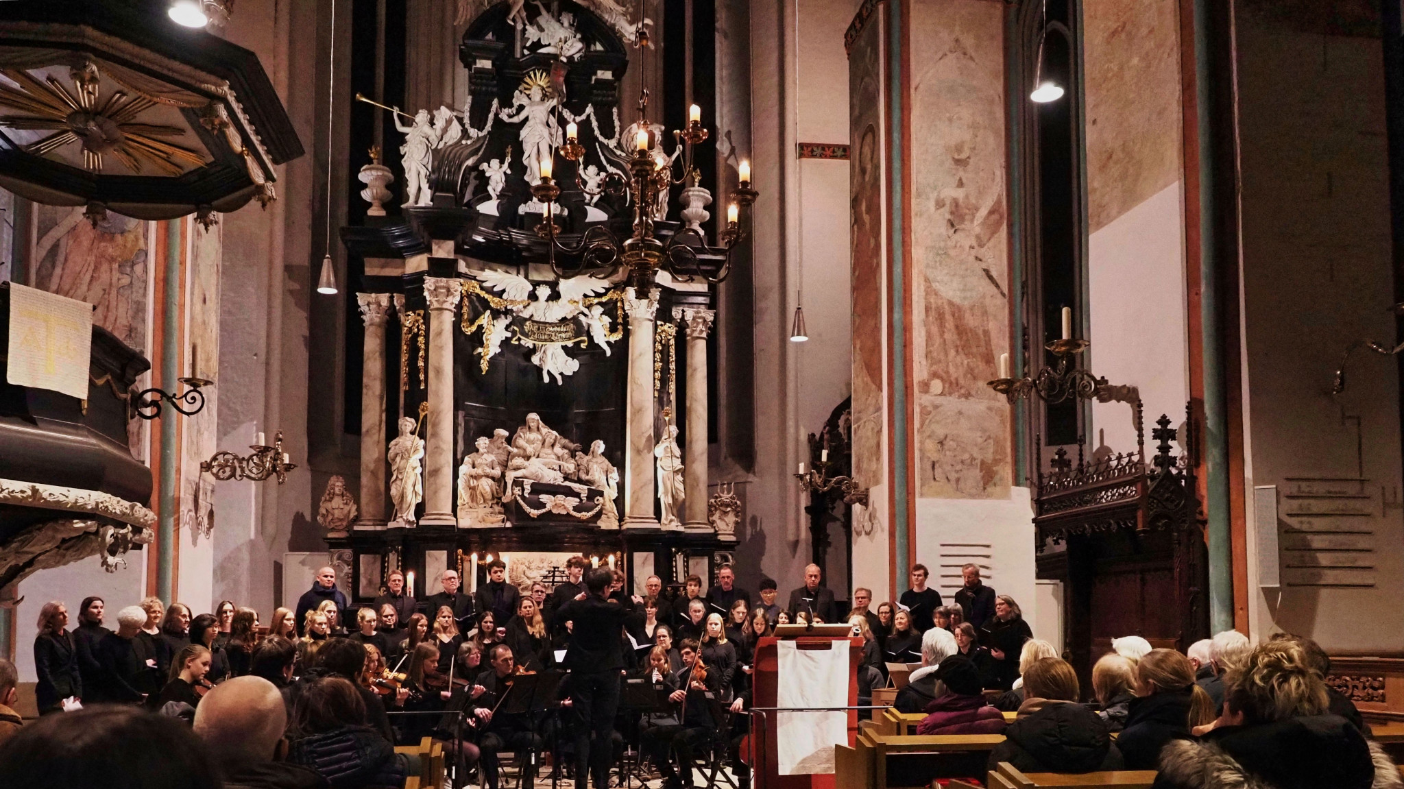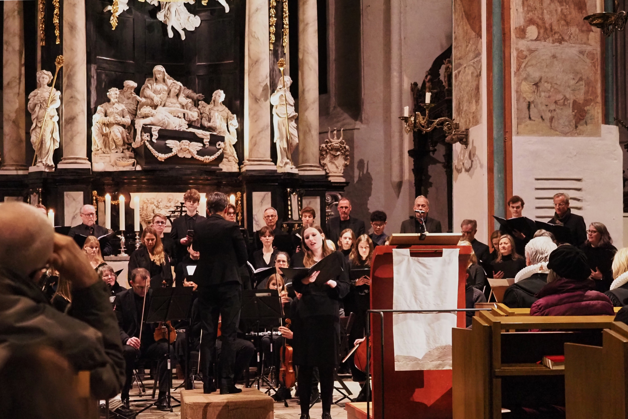 Während in der Altstadt noch die letzten Vorbereitungen für den Weihnachtsmarkt liefen, sang der Oberstufenchor, zusammen mit dem Eltern-Lehrer:innen-Freund:innen-Chor unter der Leitung von Eva-Maria Salomon die Kantate „Selig sind die Toten“ Telemanns anlässlich des jährlich stattfindenden gemeinsamen Musik-Gottesdienstes in der St. Jakobi-Kirche. Romy Pohl (Sopran), Karl Hänsel (Tenor) und Simeon Nachtsheim (Bass) traten als Solist:innen auf und wurden von dem Kammerorchester des Johanneums, das von einigen Aushilfen bereichtert wurde, unterstützt.