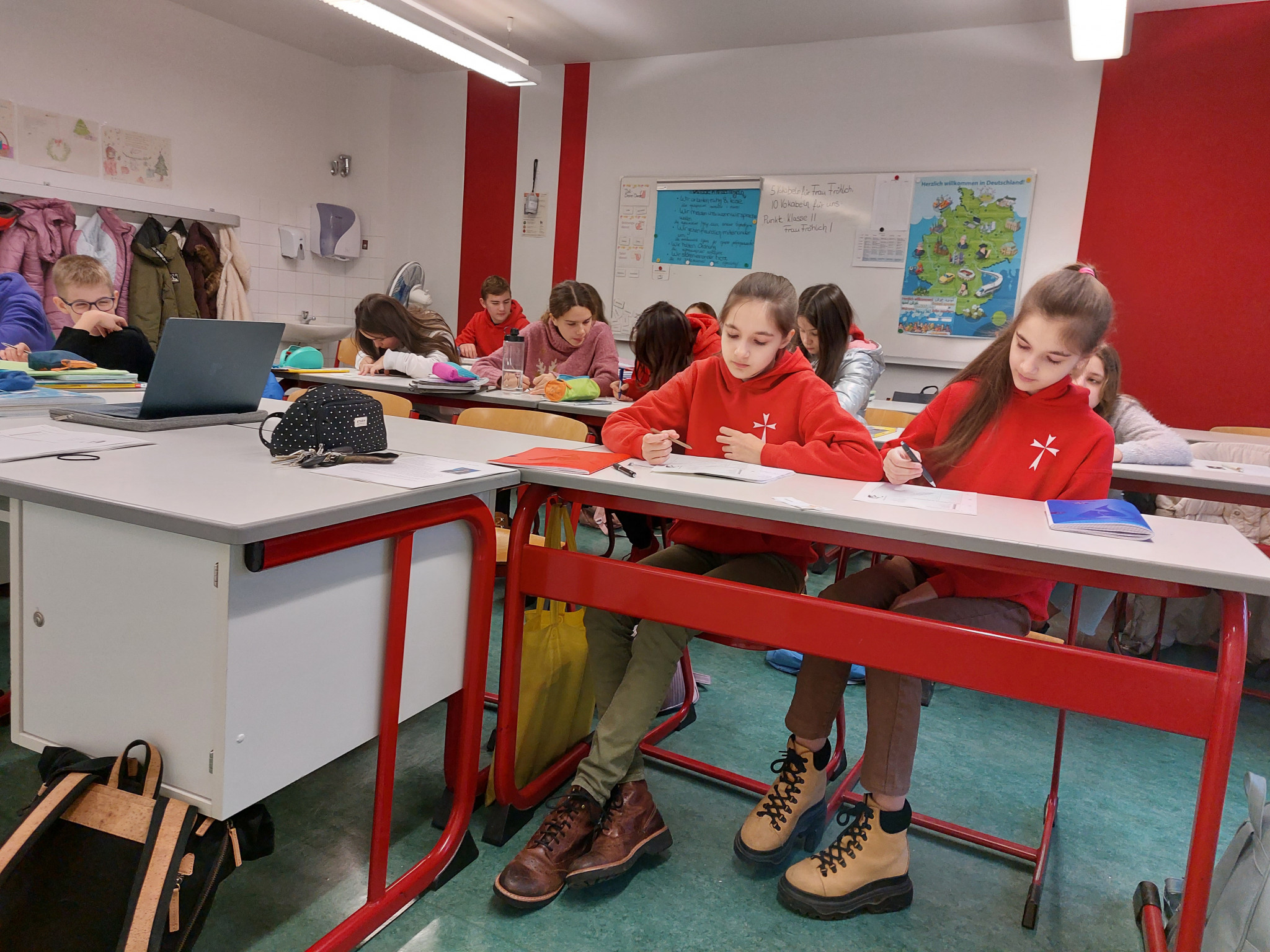 Wir kommen aus verschiedenen Städten in der Ukraine und sind froh, jetzt am Johanneum Deutsch lernen zu können. Um die Sprache schneller zu lernen, bemühen wir uns, unsere Kenntnisse durch Lesen, Schreiben, Sprechen, Hören und Grammatik zu verbessern. Aber auch im Unterricht vergessen wir nicht, Spaß zu haben und spielen manchmal Kahoot oder andere Spiele.