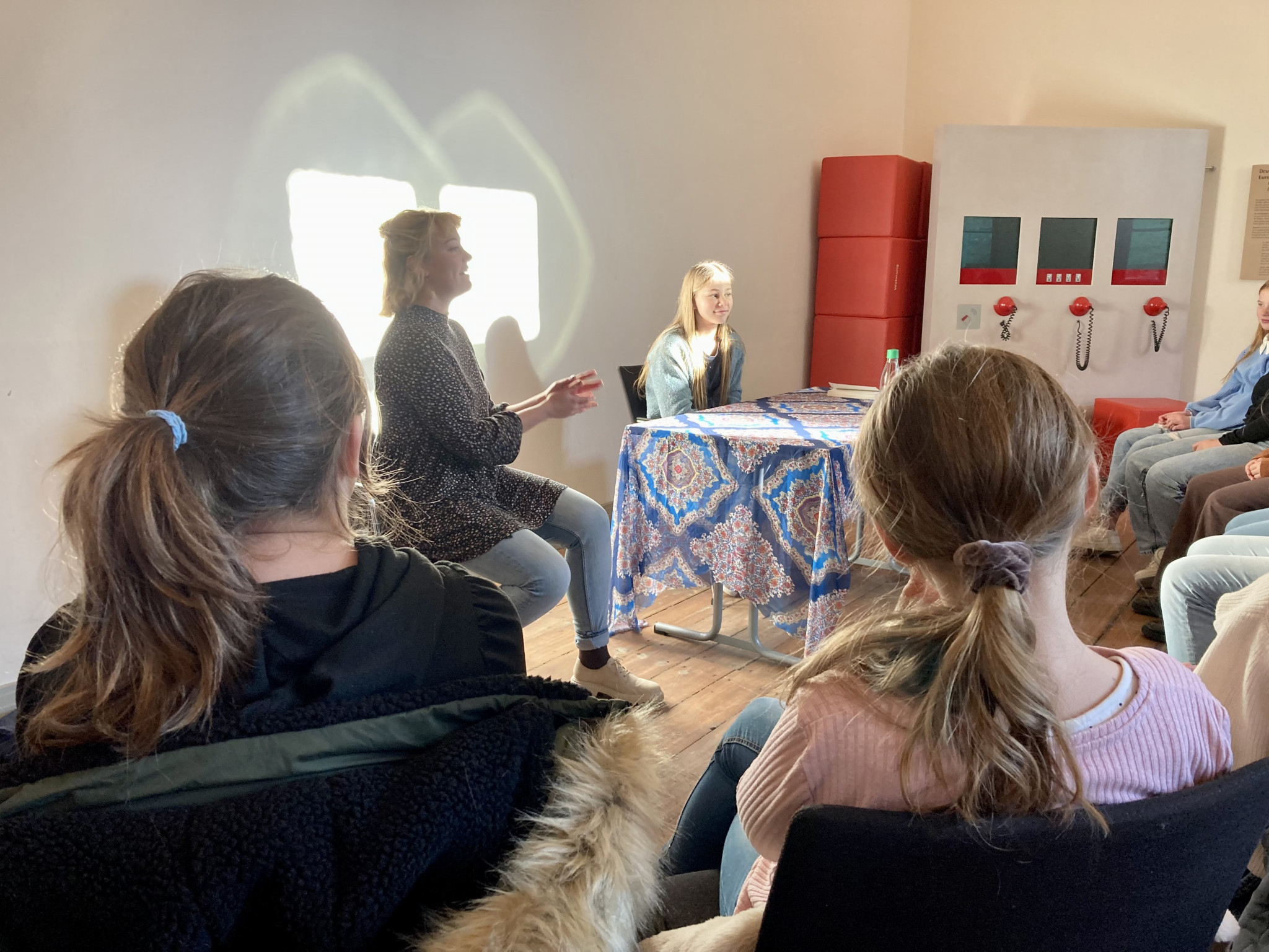 Wie das funktioniert, hat uns, den Kindern der 6b, Gretje Peters aus der 7e am 18. November im Willy-Brandt-Haus gezeigt. Sie las uns aus dem Buch „Über die Grenze“ von Maja Lunde vor, einer Geschichte, in der vier jüdische Kinder genau das durchmachen, was Willy Brandt selbst erlebte: sie flüchten aus Norwegen ins schwedische Exil und müssen darauf hoffen, dass die Erwachsenen, die ihnen begegnen, es gut mit ihnen meinen.