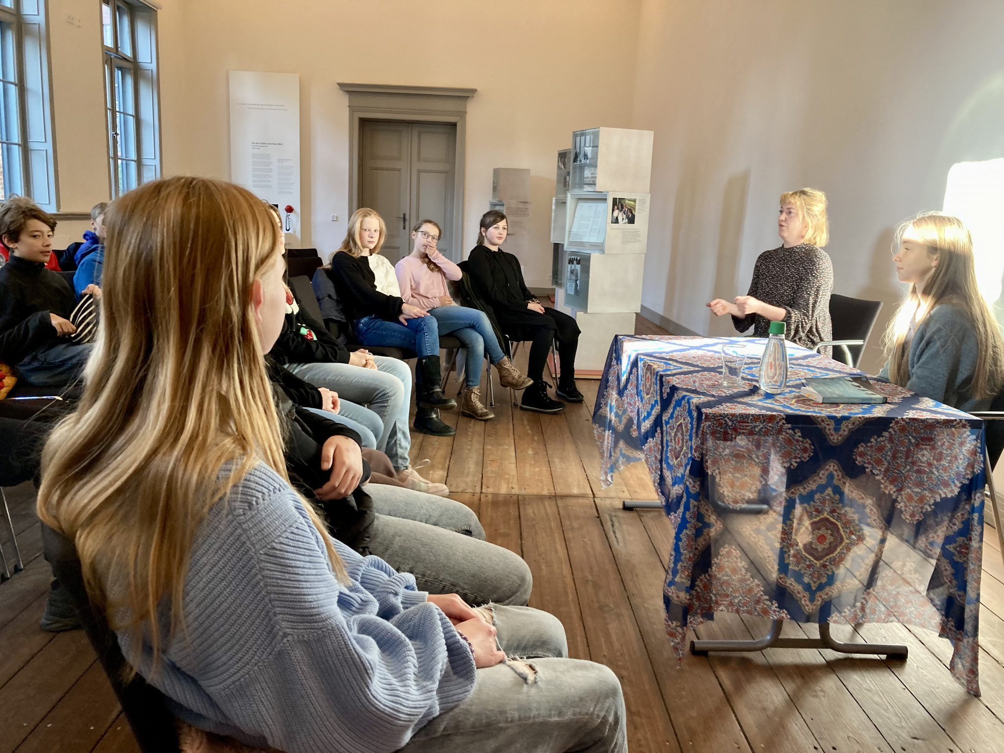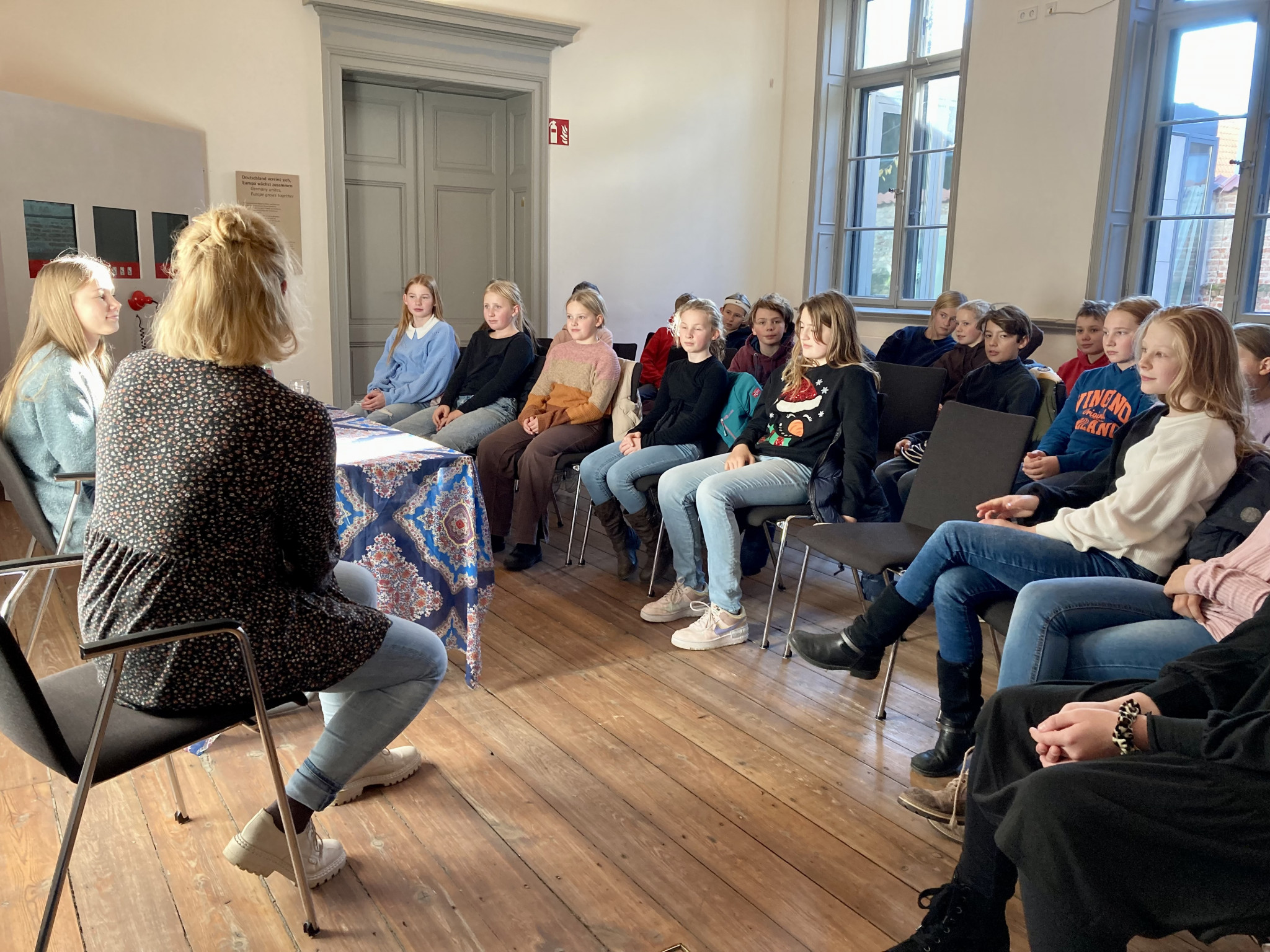 An der spannendsten Stelle hörte Gretje auf zu lesen, und darin liegt ja schon die erste Aufgabe einer guten Vorleserin: Welche Textstelle ist geeignet? Weckt sie das Interesse des Publikums? Verrät sie nicht zu viel über die Geschichte? im Anschluss durften wir Gretje noch einige Tipps abringen, denn sie hatte im vergangenen Jahr den Lübecker Vorlesewettbewerb der sechsten Klassen gewonnen, an dem wir nun teilnehmen. Damals konnte sie ihren Beitrag noch – wegen des Lockdowns – auf Video aufnehmen. Nun aber saß sie uns von Angesicht zu Angesicht gegenüber. Und so fragten wir natürlich, ob sie aufgeregt sei und wie man mit dieser Aufregung umgehen könne. Wir dankten Gretje für all ihre Tipps.