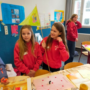 Überall sah man staunende Gesichter, die sich aufblasende Schokoküsse, ausgestopfte Tiere, vergoldete Münzen, selbstgemachte Kühlschrankmagneten oder die riesige Sporthalle musterten. Toll, dass so viele Viertklässler:innen gekommen sind!