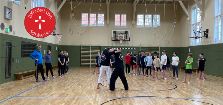Damit wir uns selbst verteidigen können, haben alle 7. Klassen einen Selbstverteidigungskurs mit Elementen aus der Kampfsportart Ju-Jutsu gemacht. Dieser wurde von einem Lehrer des TuS Lübeck angeboten. Alle teilnehmenden Schülerinnen mussten nur einen kleinen Betrag aus eigener Tasche bezahlen, um mitmachen zu dürfenn, den Großteil der Kosten übernahm der Schulverein.
