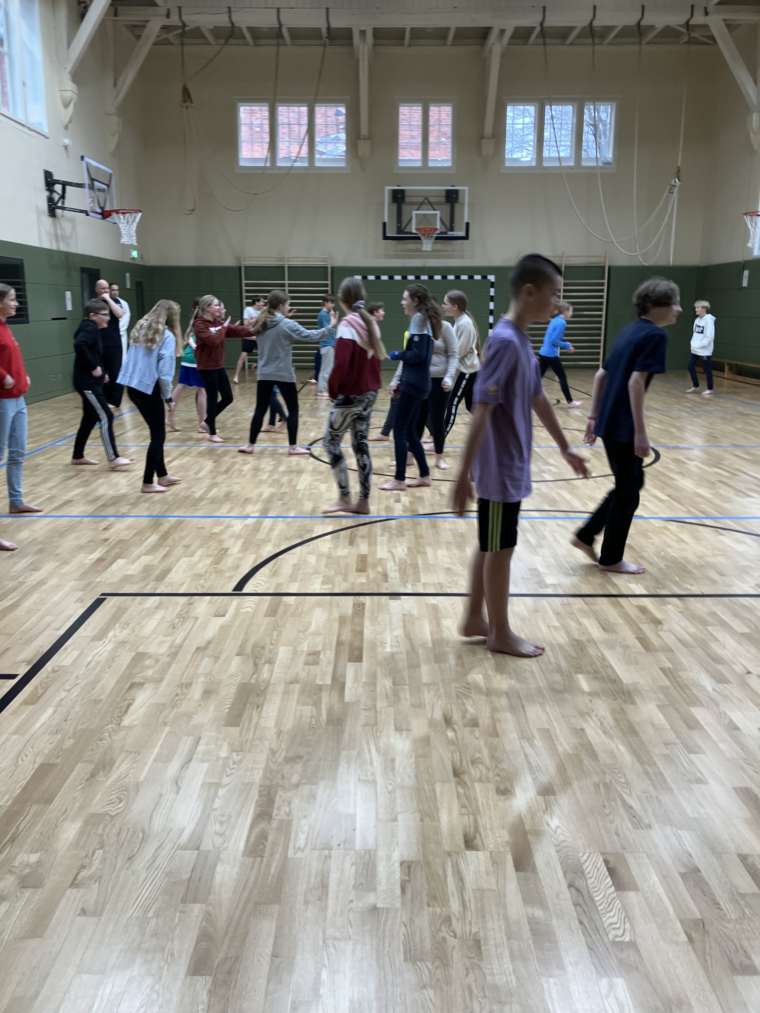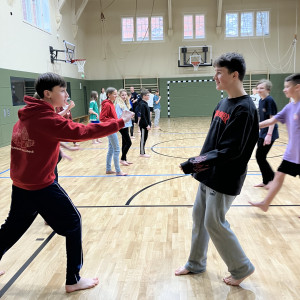 Inhaltlich haben sich die Schüler:innen mit der Begrifflichkeit der Notwehr auseinandergesetzt und spielerisch, sportlich verschiedene Verhaltensweisen ausgetestet, wie man sich in gefährlichen Situationen verhält.