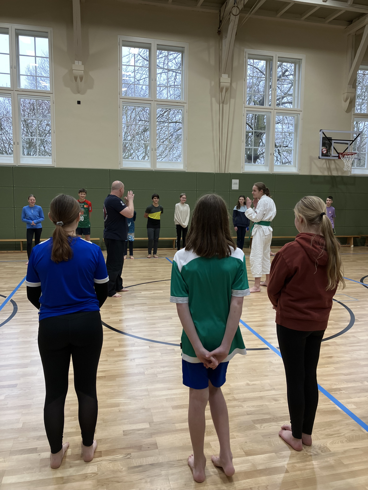 „Distanz wahren“ – „Deckung aufbauen“ – „niemals jemandem den Rücken zudrehen“ – waren die Worte, die dabei immer wieder durch die Halle gerufen wurden.