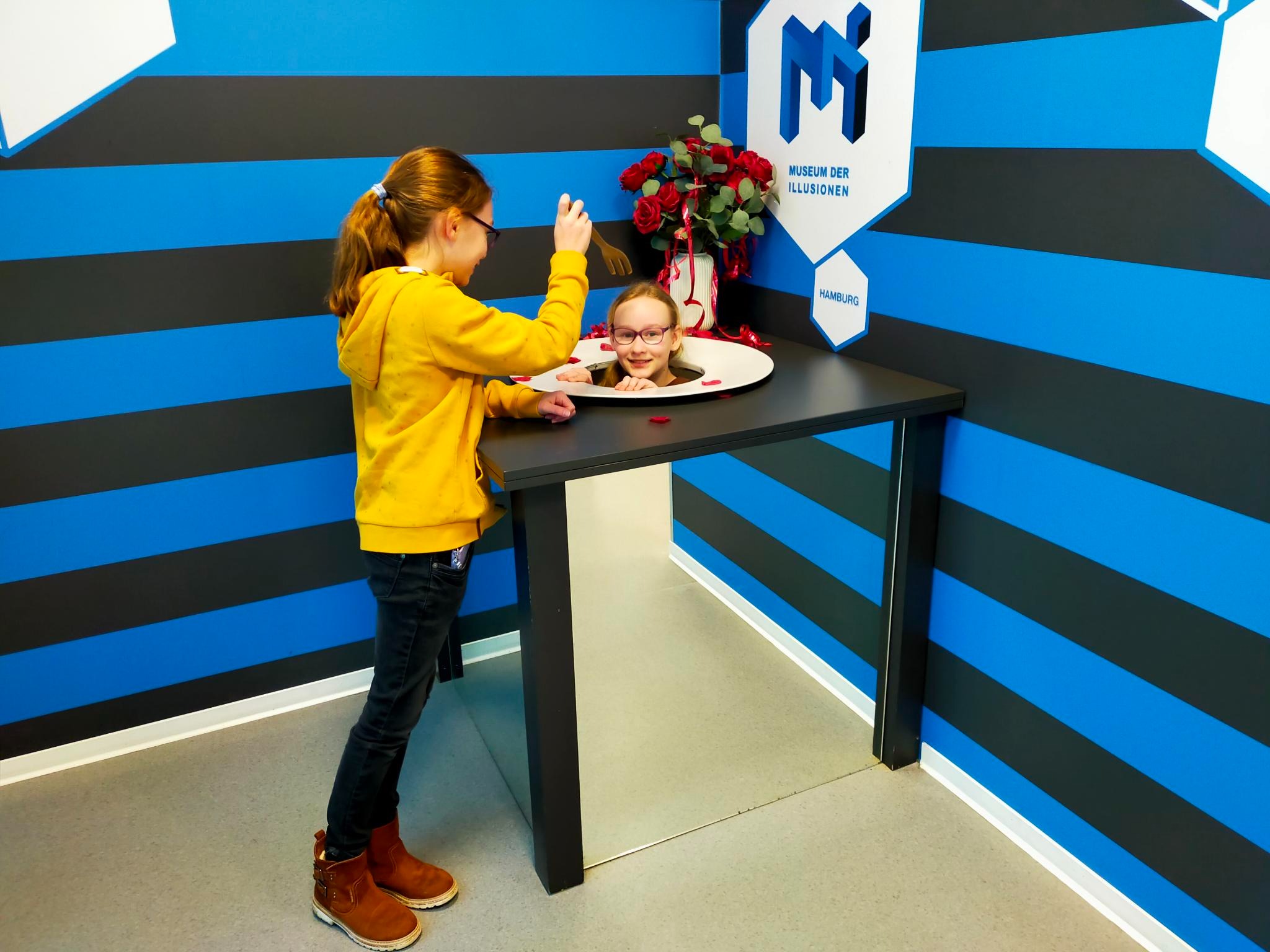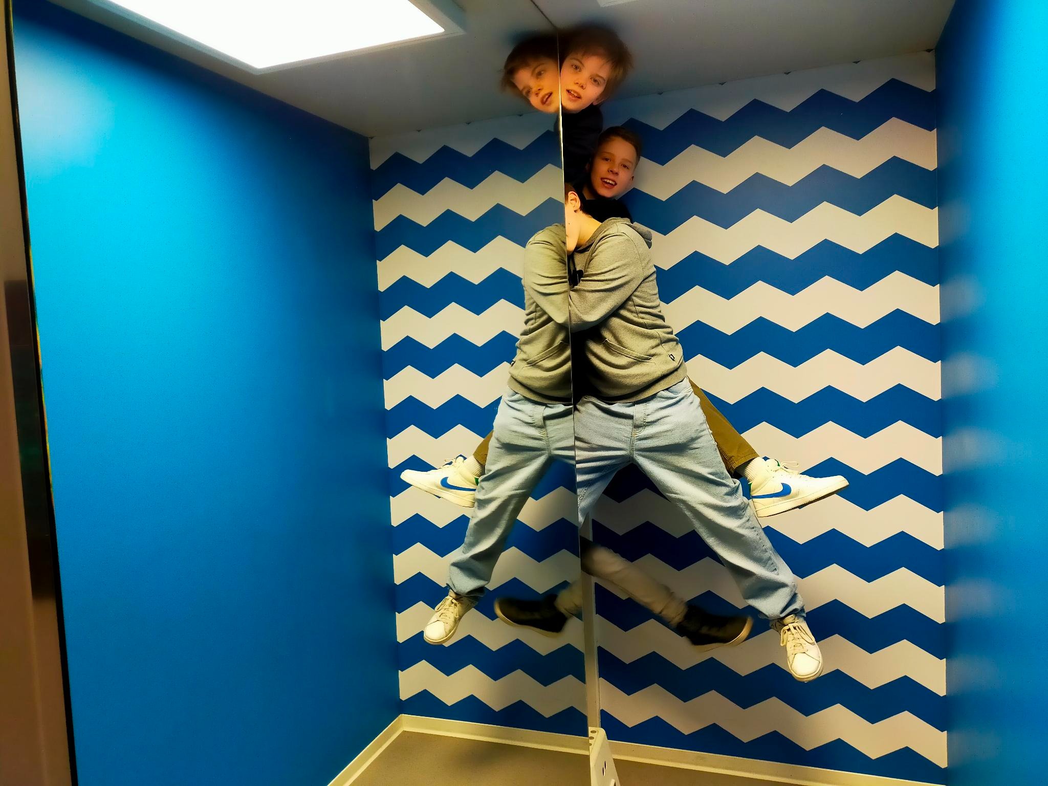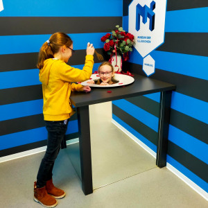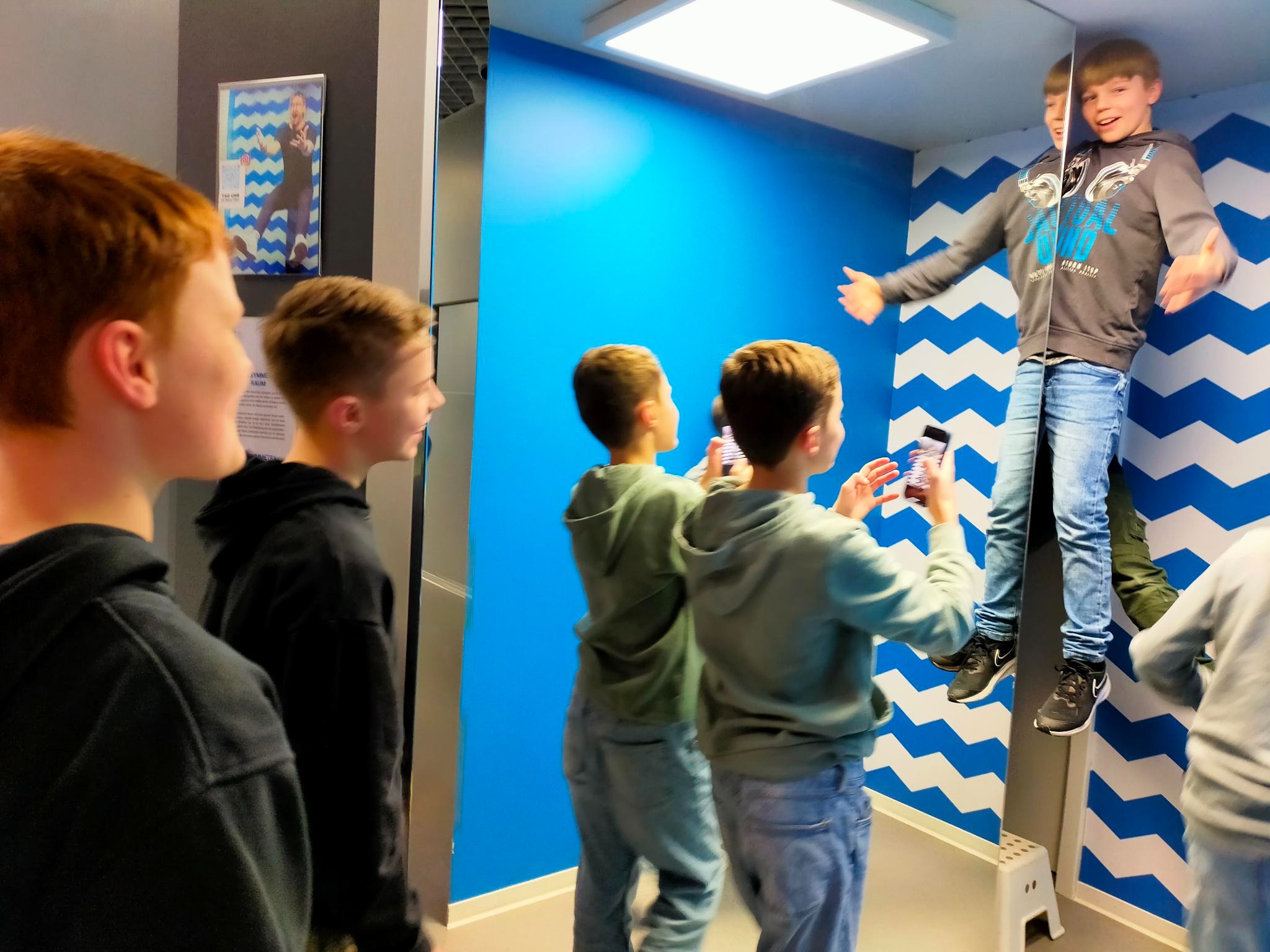 Daraufhin gingen wir zum Höhepunkt unseres Ausfluges, dem „Museum der Illusionen“. Es gab viele Knobelspiele, Optische Täuschungen und es wurde viel mit Spiegeln gearbeitet, um unser Gehirn zu verwirren. Besonders gut hat uns der umgedrehte Raum gefallen.