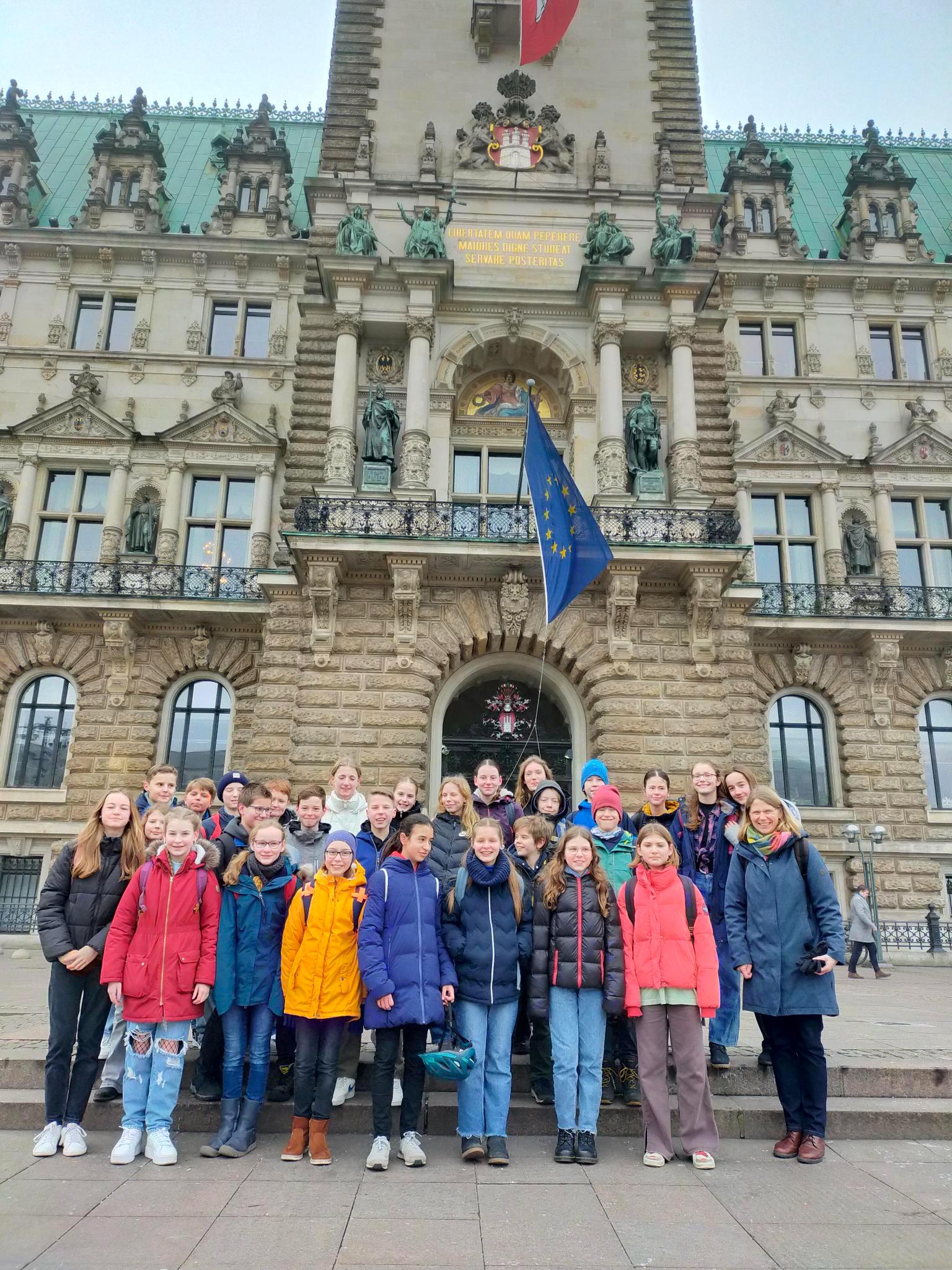 Wir, die 6d, waren mit Frau Christiansen und Herrn Lübke in Hamburg. Nachdem wir dort am Hauptbahnhof angekommen waren, gingen wir zu „Franz and Friends“, wo wir uns jede:r eine der 15 verschiedenen Franzbrötchensorten aussuchen durften. Es gab welche mit Apfelmus, Schokostreuseln Zimt und Zucker und noch viele mehr. Danach guckten wir uns den historischen Teil Hamburgs an und konnten dabei unsere Brötchen genießen.