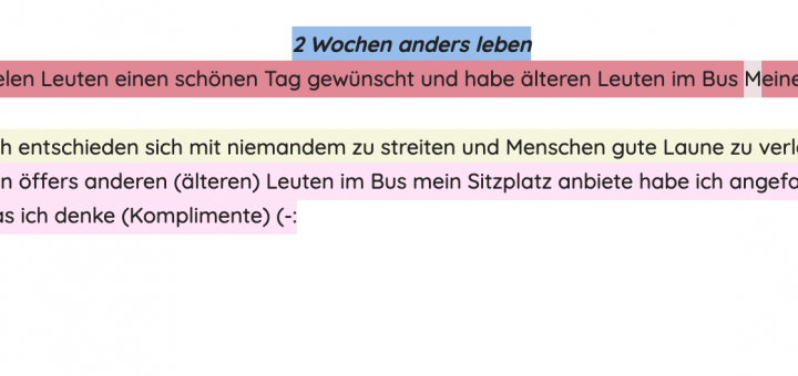 https://zumpad.zum.de/p/9RlnFUT1qkqjomZdNX02 eure Erfahrungen der zwei Wochen mit anderen zu teilen. Auf welche Arten habt ihr Glück geschaffen? Wie sind Eure Gesten bei Anderen angekommen?