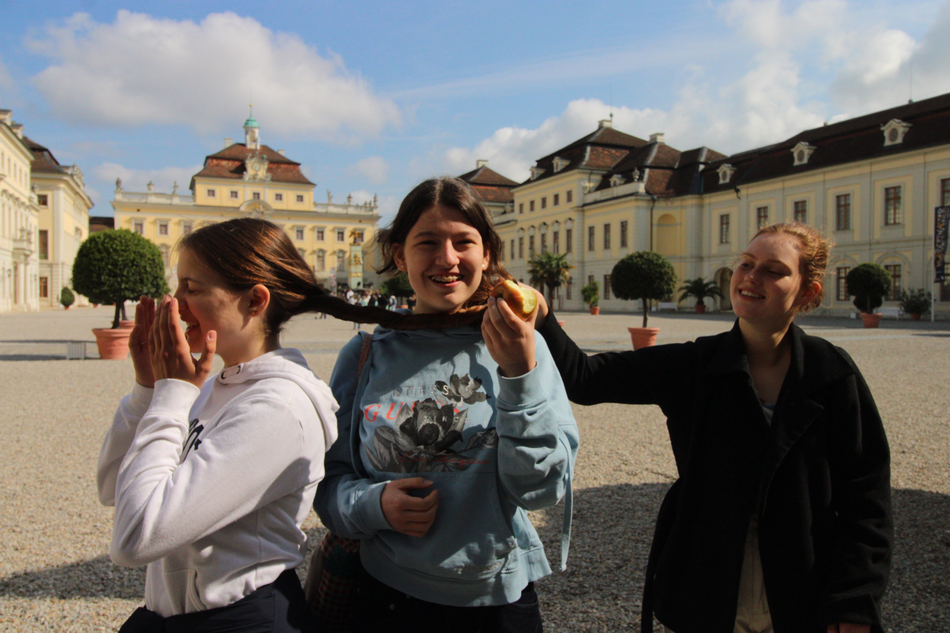 Felix, unserer sympathischer Busfahrer, erwartete uns schon am frühen Sonntagmorgen des Muttertags an der Kanalstraße, um unsere Reise zu starten. Wir schlängelten uns durch den Stau, fast ganz Deutschland und kamen schlussendlich abends müde in unserer Austauschstadt Ludwigsburg an. Erwartungsvolle und erst noch überforderte Gesichter nahmen uns in Empfang. Doch die Aufregung legte sich bald und wir blickten voller Vorfreude auf die kommenden Tage: Uns erwartete ein Ausflug zu dem Herzog Ludwig, dem Mercedes-Benz Museum in Stuttgart, aber vor allem eins stand im Vordergrund: Gemeinsam Musik machen!