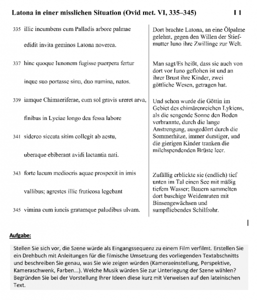 Für die letzten Wochen sah man bei uns im Unterricht kaum Wörterbücher und Grammatikhefte. Dafür wurden Drehbücher geschrieben, Hörbücher aufgenommen, Filmbesetzungen besprochen und Musik herausgesucht, Zeichnungen angefertigt und Teddybären als Babys verkleidet. Das zentrale Thema dabei war die von Ovid beschrieben Flucht der Göttin Latona, welche ihre neugeborenen Zwillinge vor der eifersüchtigen Hera beschützen musste und dabei eine spannende und gefährliche Reise unternahm.