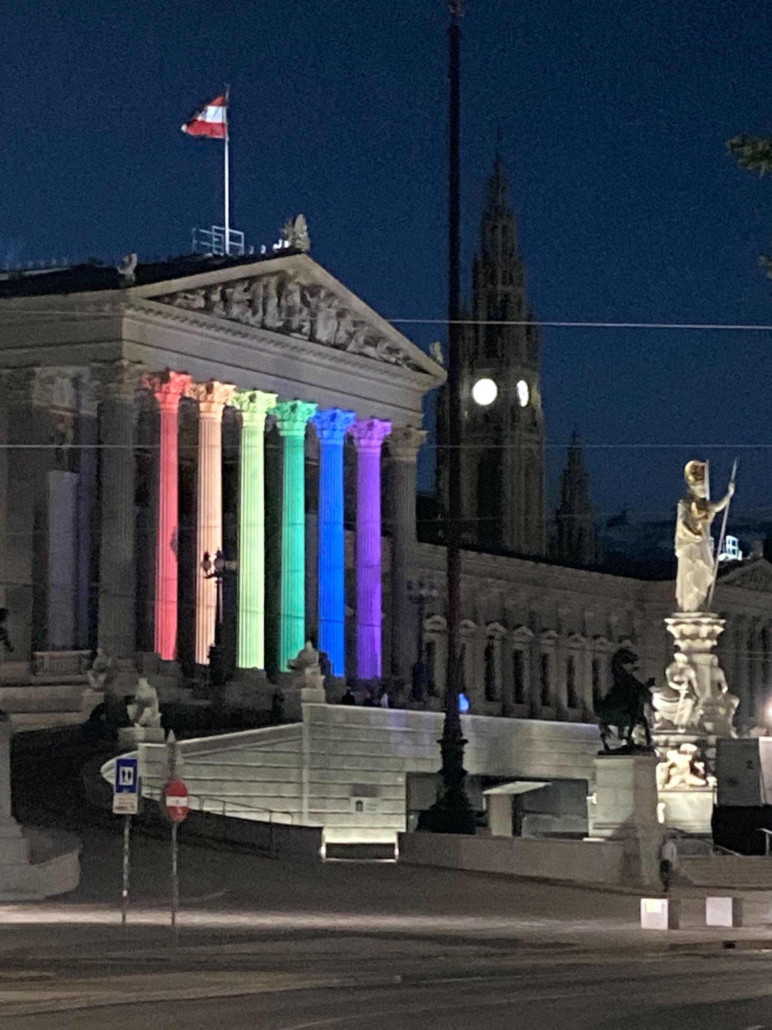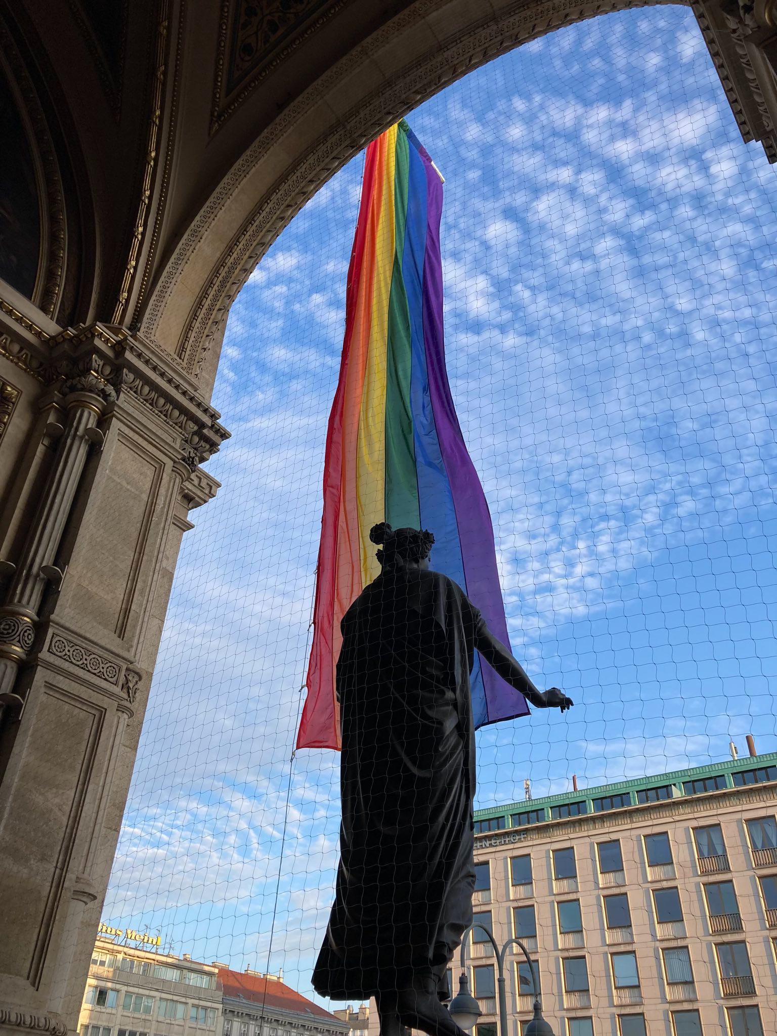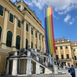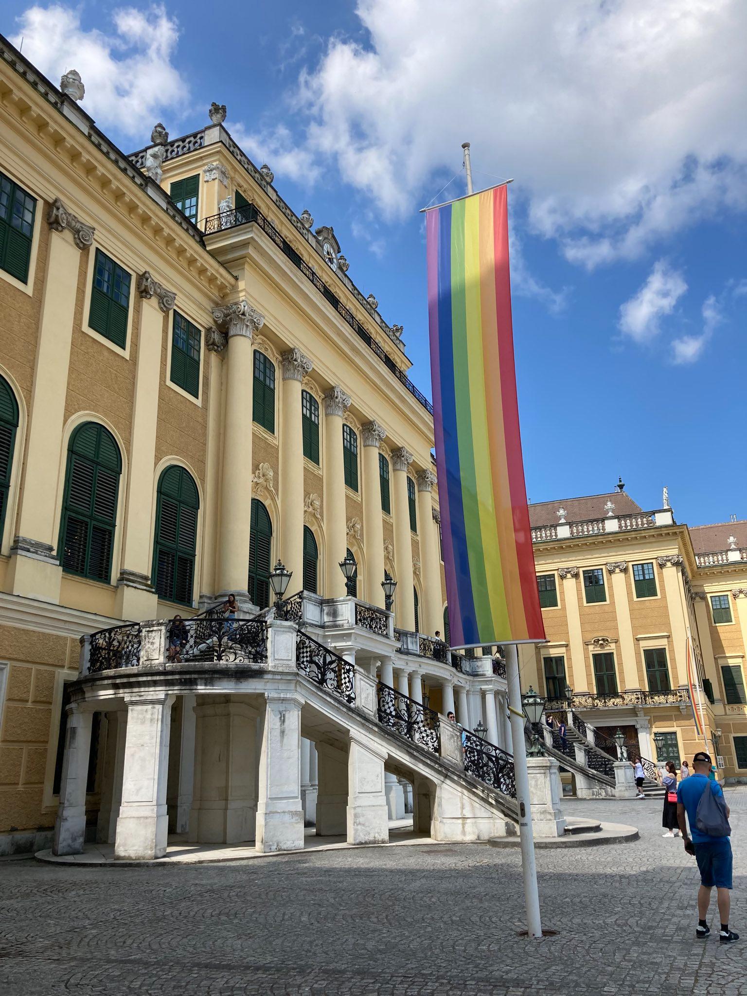Pride in Wien 25. Juni 2023 Nicht nur am Johanneum hängt die Pride-Flagge, ganz Wien feiert den Pride-Monat! Das Musikprofil konnte sich während der Studienfahrt davon überzeugen. Fotos: Kathrin Maetzel