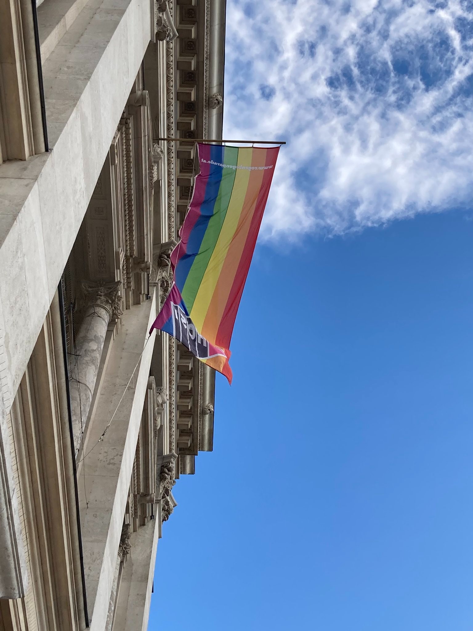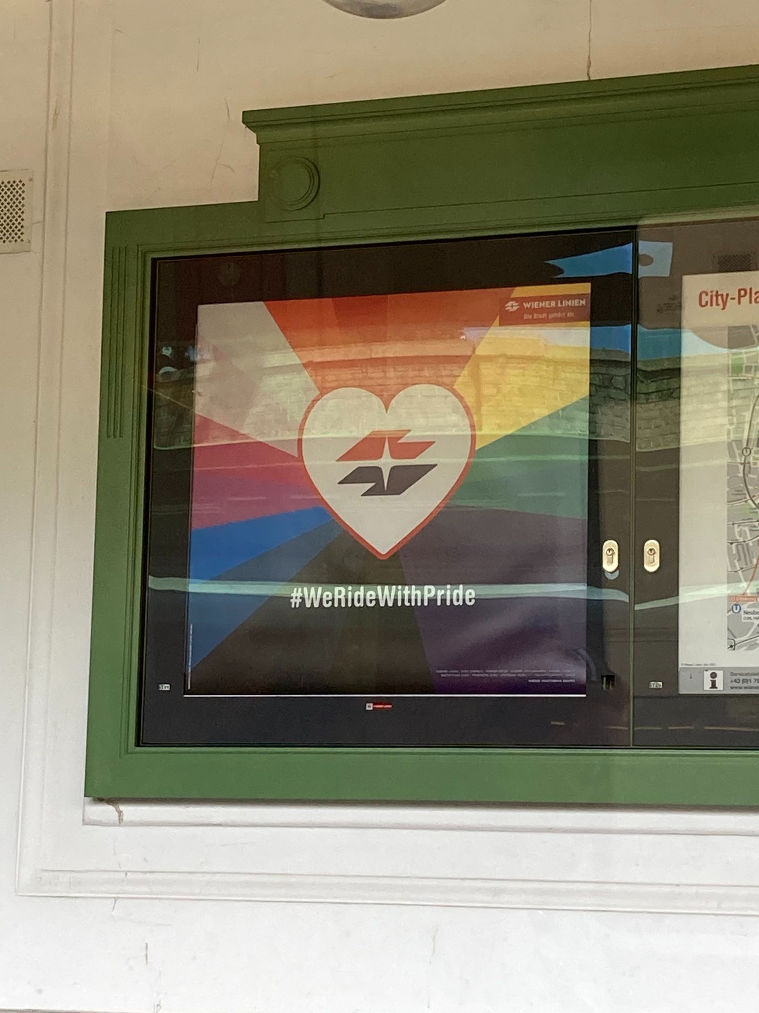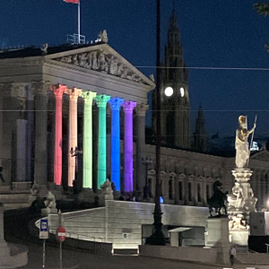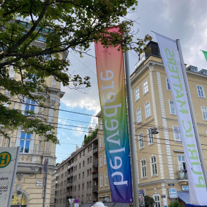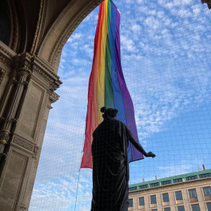 Pride in Wien 25. Juni 2023 Nicht nur am Johanneum hängt die Pride-Flagge, ganz Wien feiert den Pride-Monat! Das Musikprofil konnte sich während der Studienfahrt davon überzeugen. Fotos: Kathrin Maetzel