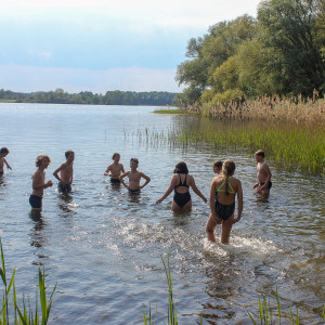 Die Klassenfahrt begann mit einer hügeligen, mückenstechenden, aufregenden Fahrradtour nach Groß Thurow in eine Jugendherberge, wo früher die Grenze von Deutschland war. Es gab ein tolles Programm mit viel Teamwork. Als Highlight musste man nur einen kleinen, schönen Weg runter gehen und kam an einen kleinen, feinen See. Es wurden dort Klassenmitglieder eingebuddelt und manche sind auf Bäume geklettert. Und unsere Verbindung als Klasse hat sich weiter ausgebreitet. Es gab sogar eine kleine Jongliereinheit von Herrn Anneken. Am letzten Abend haben wir uns dann in einem gemütlichen Raum niedergelassen und haben viele Spiele gespielt – bis auf einmal ein kleiner süßer Waschbär an einem Baum vor dem Fenster hochkletterte. Alle sprinteten zu den Fenstern und haben dem Kleinen mit strahlenden Augen zugeguckt. Und Herr Anneken, als Tierfotograf, ist schnell raus mit seiner Kamera und hat tolle Bilder geschossen!
