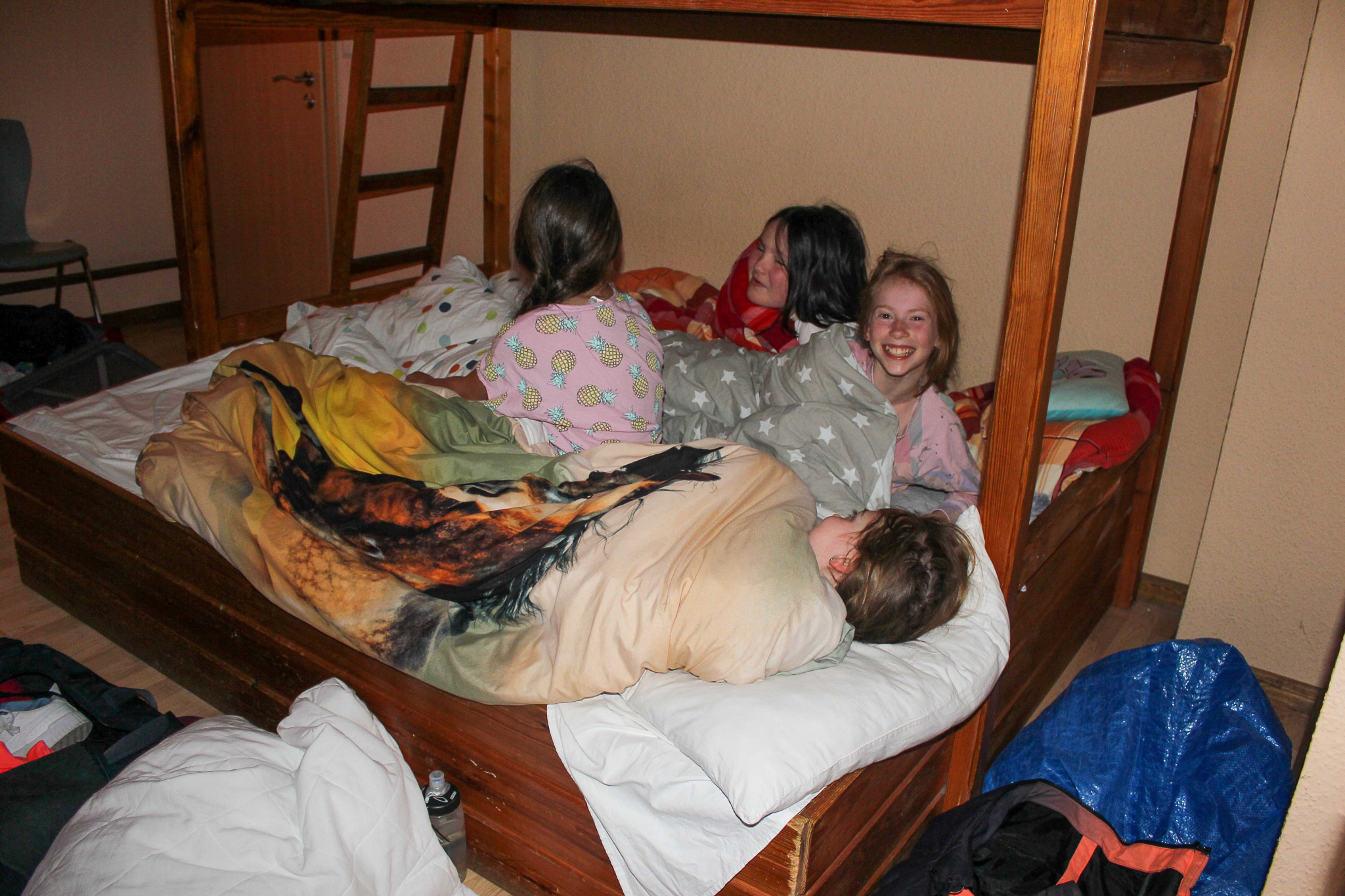 Als wir uns am Abend erneut zu einem kleinen Spieleabend zusammenfanden, fiel uns ein Waschbär auf den nahe gelegenen Bäumen vor den Fenstern auf. Wir beobachteten ihn eine Weile und fingen danach an unsere Habseligkeiten, die wir nicht mehr brauchten, einzupacken. Anschließend gingen wir ins Bett.