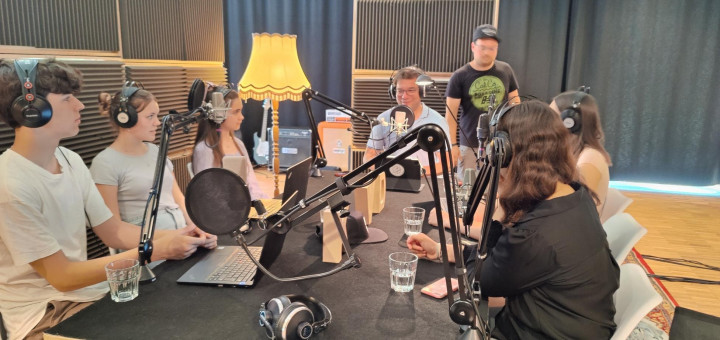 Ganz schön aufregend wurde es für Clara, Mara, Diana, Matilda und Ilias der 9d und Liliia aus der DaZ-Klasse am 21. Juni, als sie vor sich ein Mikrophon hatten, ihre Stimmen nur noch über Kopfhörer hörten und ihnen gegenüber auf der einen Seite der bekannte Geiger Daniel Hope und auf der anderen Seite der Moderator Axel Brüggemann saßen.