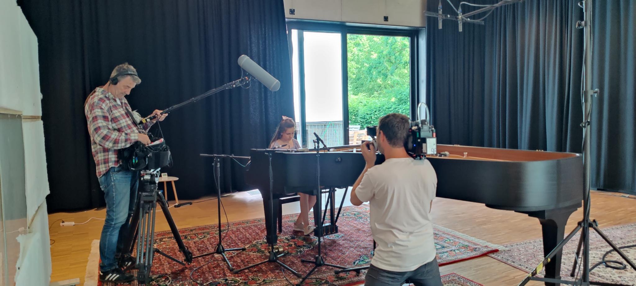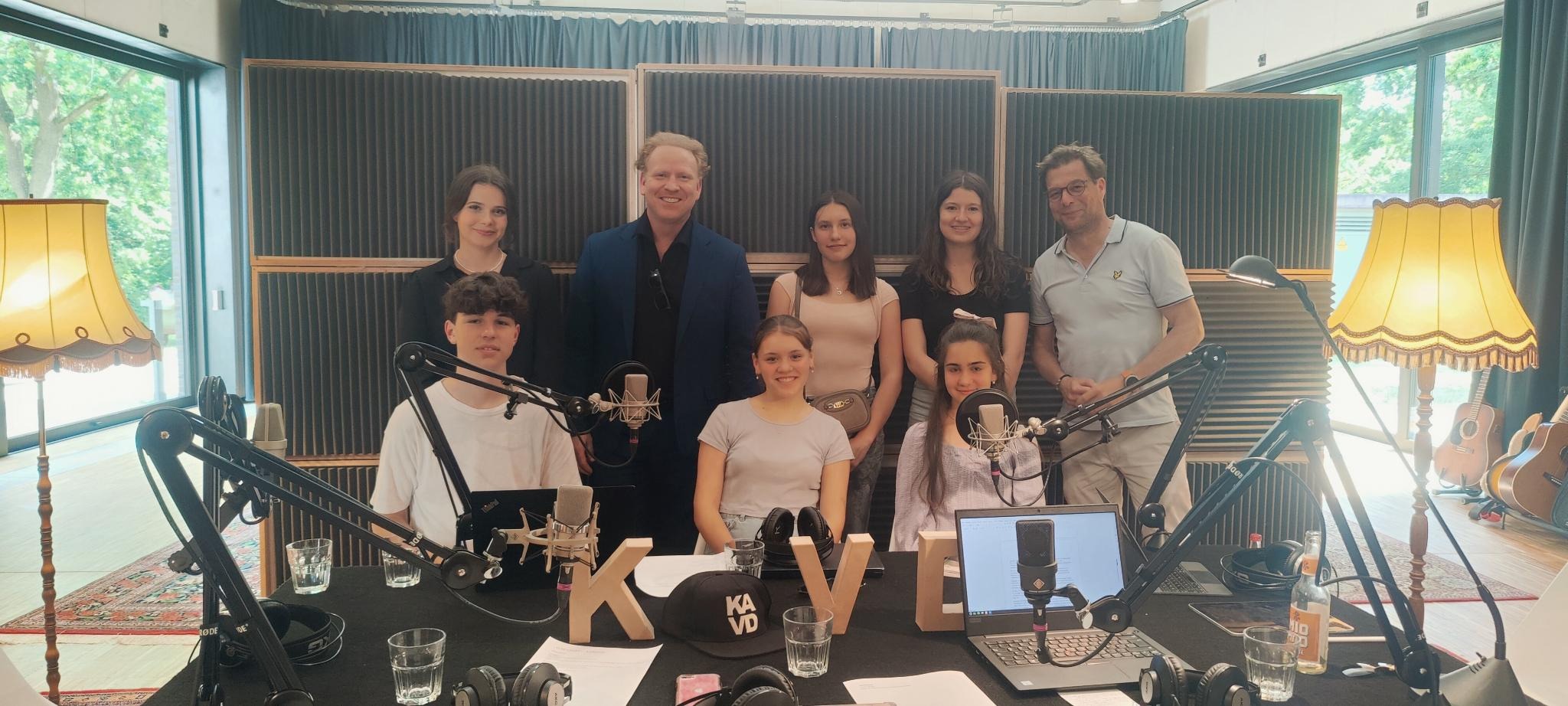 Ganz schön aufregend wurde es für Clara, Mara, Diana, Matilda und Ilias der 9d und Liliia aus der DaZ-Klasse am 21. Juni, als sie vor sich ein Mikrophon hatten, ihre Stimmen nur noch über Kopfhörer hörten und ihnen gegenüber auf der einen Seite der bekannte Geiger Daniel Hope und auf der anderen Seite der Moderator Axel Brüggemann saßen.