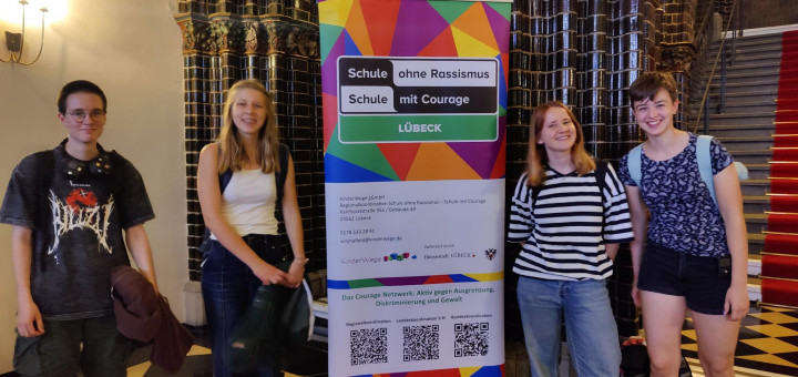 Am Donnerstag, den 07.09.2023, besuchten wir als Antidiskriminierungs-AG das Regionaltreffen aller Schulen Lübecks, die sich als „Schule ohne Rassismus – Schule mit Courage“ bezeichnen. Dafür trafen wir uns mit Vertreter*innen verschiedener Schulen, darunter sowohl Grundschulen, Gemeindschaftsschulen, als auch Gymnasien, im Rathaus. Durch Stellwände, an denen jede Schule ihre bisherigen Aktionen darstellen konnte, lernten wir viel über die verschiedenen Herangehensweisen an das Thema Diskriminierung. (Dies fanden wir im Übrigen so anschaulich, dass wir unsere Stellwand am Johanneum noch einmal nachbauten. Sie wird jetzt für einige Zeit im Foyer stehen, wo ihr herzlich dazu eingeladen seid, einmal vorbeizuschauen und vielleicht etwas über unsere AG zu lernen!)