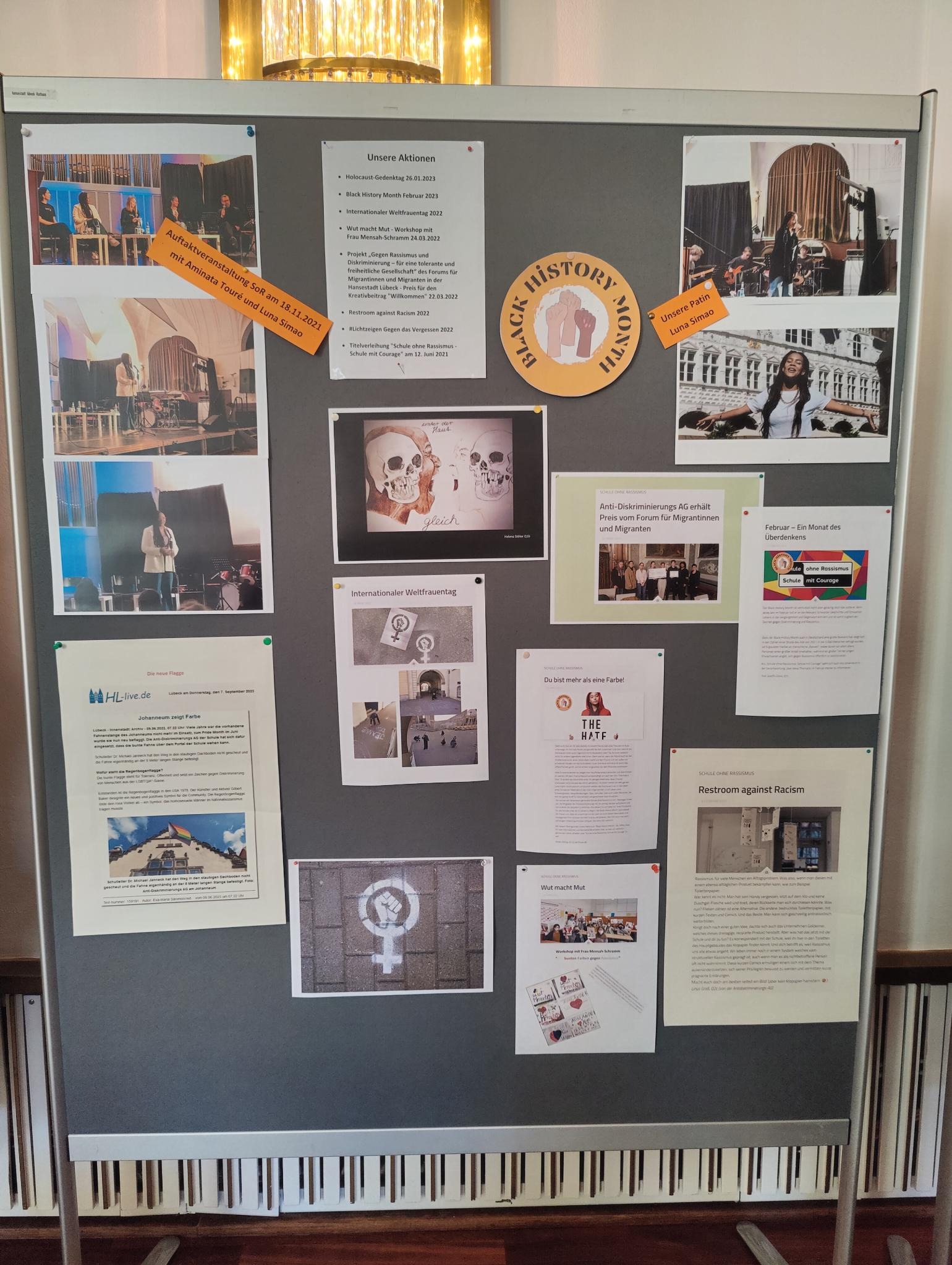 Am Donnerstag, den 07.09.2023, besuchten wir als Antidiskriminierungs-AG das Regionaltreffen aller Schulen Lübecks, die sich als „Schule ohne Rassismus – Schule mit Courage“ bezeichnen. Dafür trafen wir uns mit Vertreter*innen verschiedener Schulen, darunter sowohl Grundschulen, Gemeindschaftsschulen, als auch Gymnasien, im Rathaus. Durch Stellwände, an denen jede Schule ihre bisherigen Aktionen darstellen konnte, lernten wir viel über die verschiedenen Herangehensweisen an das Thema Diskriminierung. (Dies fanden wir im Übrigen so anschaulich, dass wir unsere Stellwand am Johanneum noch einmal nachbauten. Sie wird jetzt für einige Zeit im Foyer stehen, wo ihr herzlich dazu eingeladen seid, einmal vorbeizuschauen und vielleicht etwas über unsere AG zu lernen!)