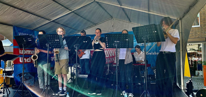 Am Samstag, den 16. September, ist eine Combo aus acht Mitgliedern der Bigband bei dem offiziellen „Tag des Handwerks“ mit einem bunten Programm auf dem Lübecker Marktplatz aufgetreten.