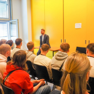Danach hatte sich der Abgeordnete Tim Klüssendorf Zeit für uns genommen, um unsere Fragen zu beantworten. Er konnte unsere Fragen zu ganz unterschiedlichen Themen klären und ist wirklich offen mit uns umgegangen, sodass die Stimmung sehr locker war.