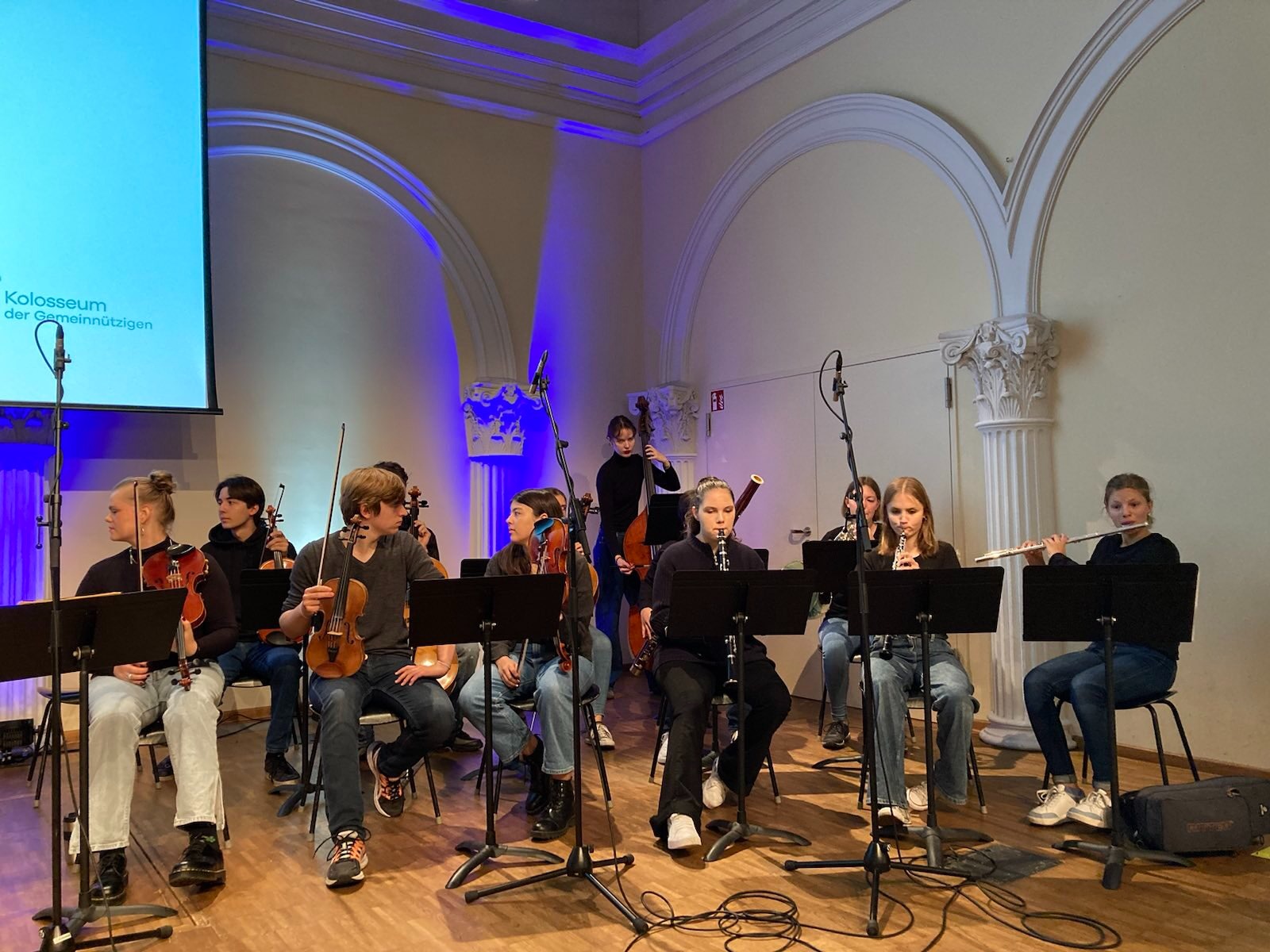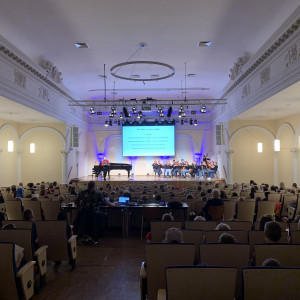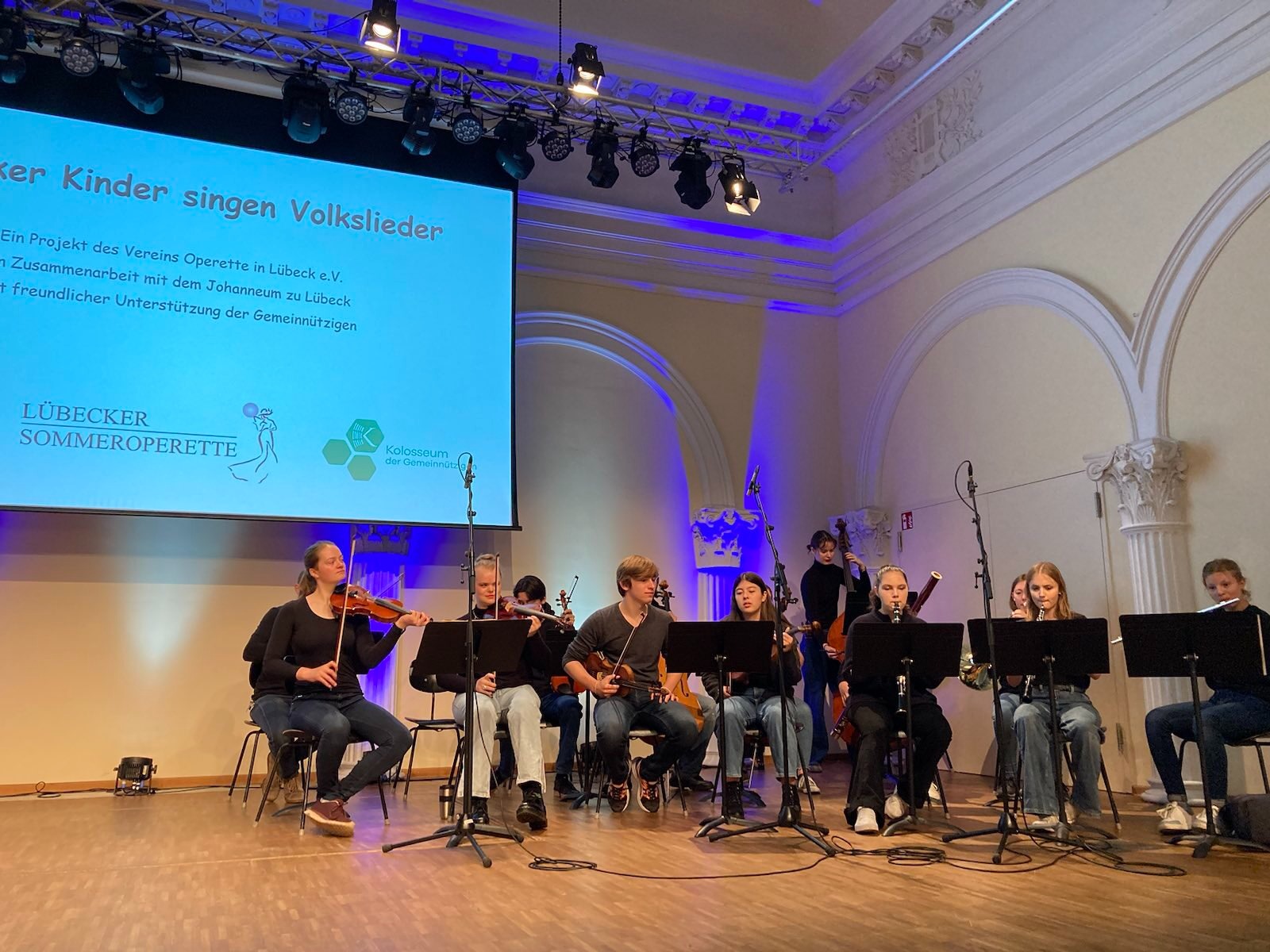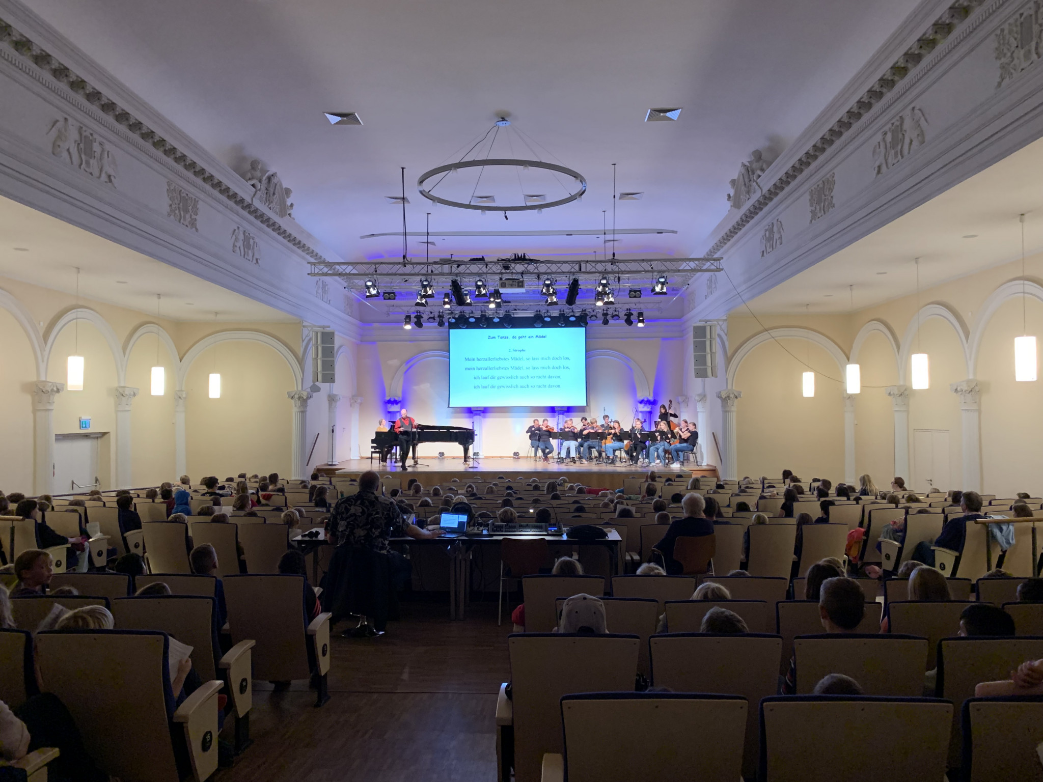 Diesmal fand das Zusammentreffen, anders als sonst nicht in der Musik und Kongresshalle, sondern im Kolosseum statt. Vielleicht erinnert ihr euch ja selber daran, wie aufgeregt ihr in der vierten Klasse „Brüderchen, komm tanz mit mir“ oder „Ein Schneider fing ne Maus“ lauthals beim Volksliedersingen mitgesungen habt. Denn seit vielen Jahren treffen sich Kinder, um gemeinsam Volkslieder  zu singen und das Sinfonieorchester begleitet, abwechselnd mit Frau Maetzel am Klavier, die Stücke dabei mit einem Kammerorchester.