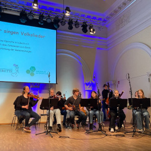 Wie hören sich wohl Kinder- und Volkslieder an, wenn mehr als 200 Grundschüler: innen sie singen? Ob einem wohl die