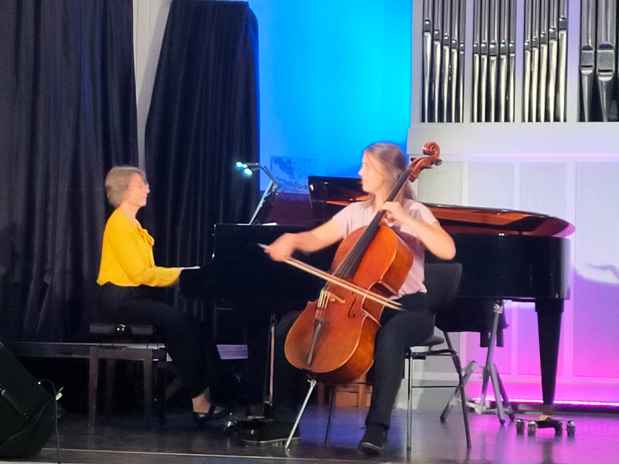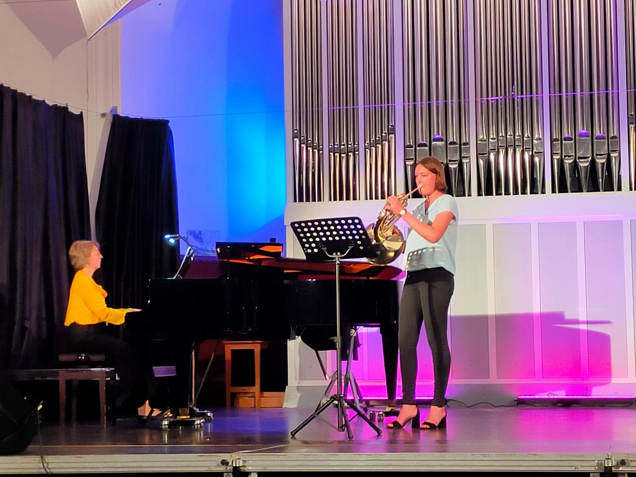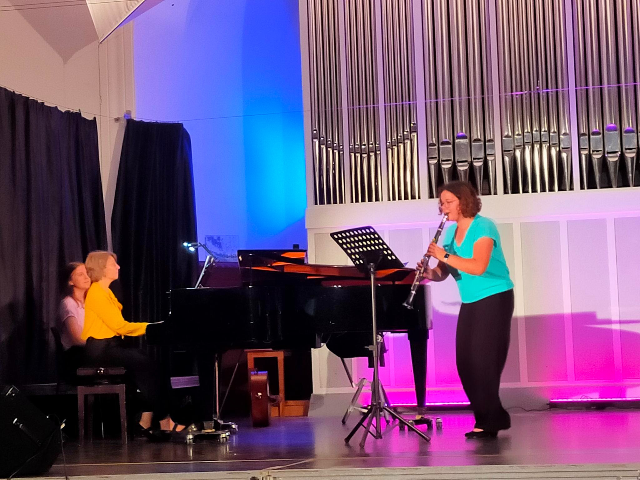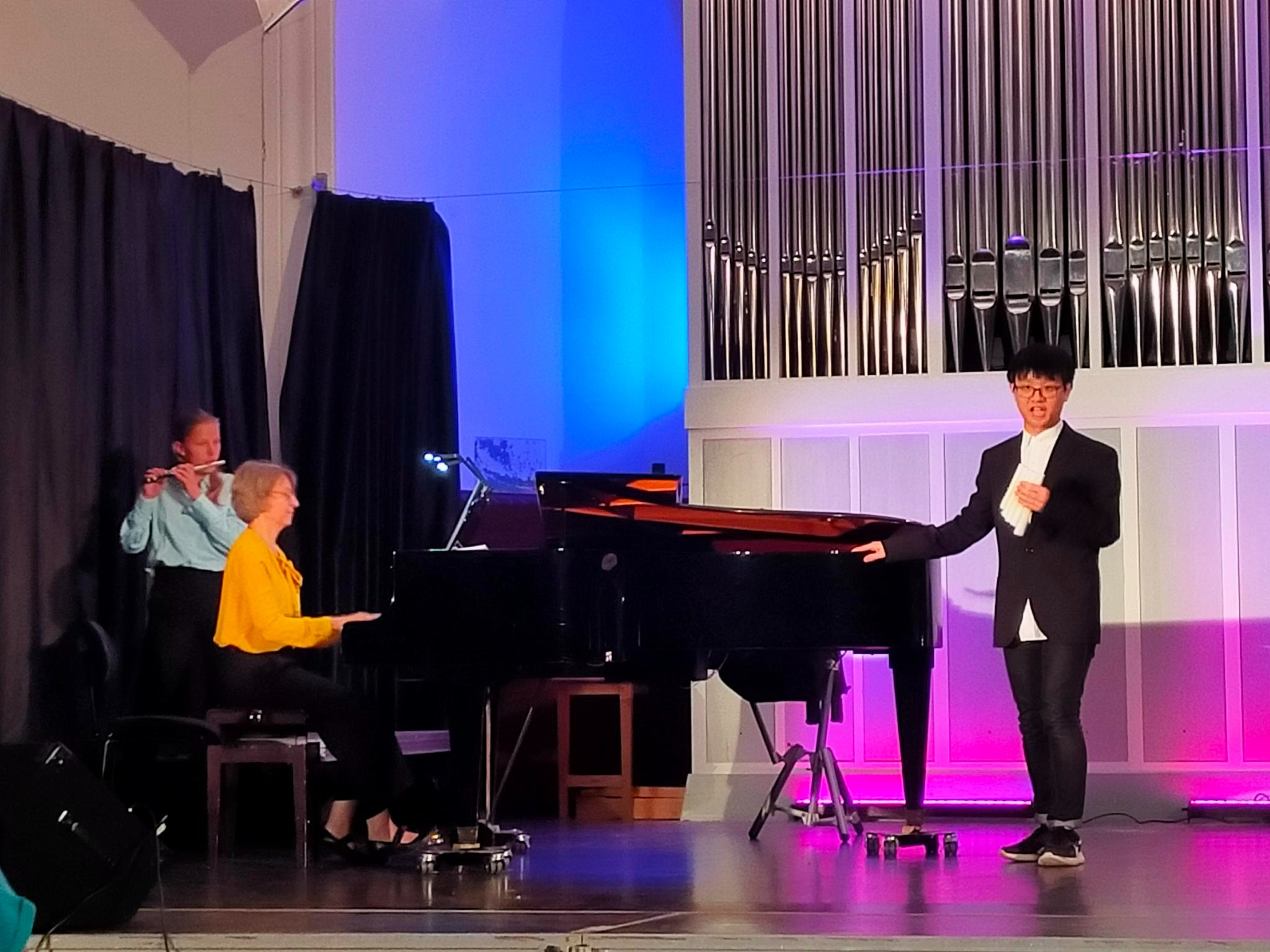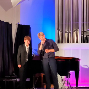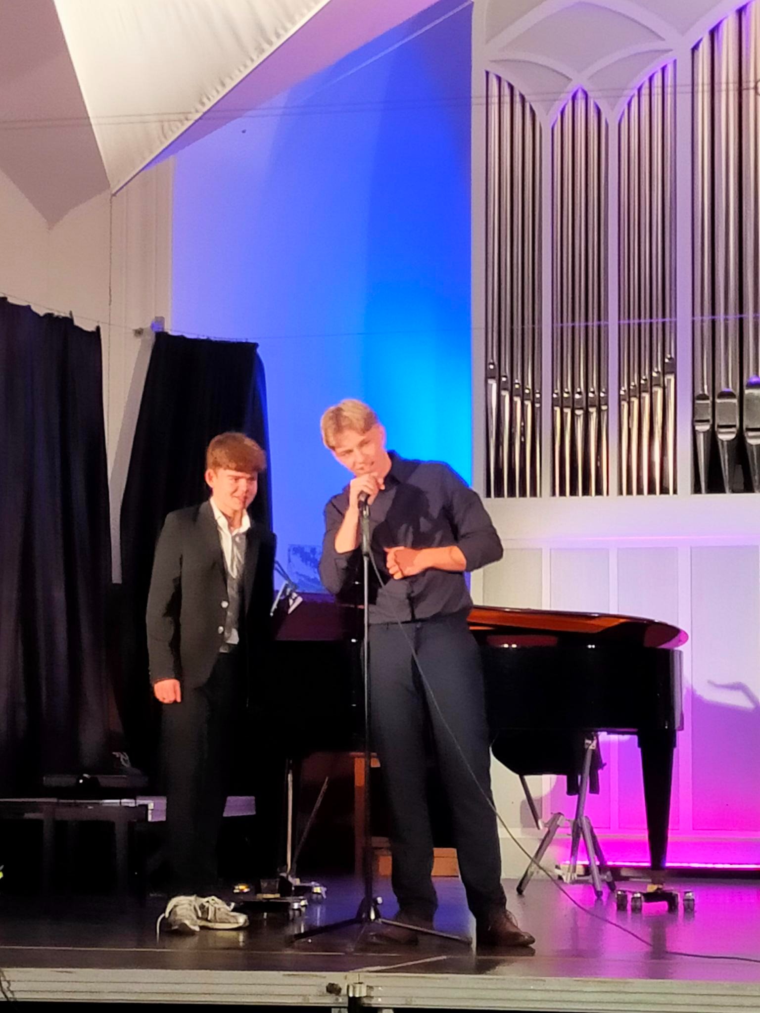 Durch das Programm führten souverän am Mikro Christopher Tamm und Adrian Beytulai-Puhlmann. Sie kündigten die Auftritte an, die eine besondere Vielfalt aufwiesen. Von kraftvollen und konzentrierten Soli am Cello, der Klarinette oder dem Horn, meisterlich begleitet von Frau Maetzel, über Duette mit Klavier oder Violine ging es bis zu klassischen Gesangsdarbietungen.